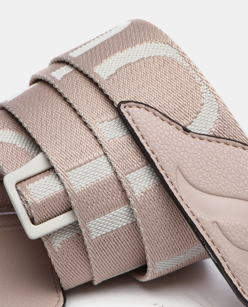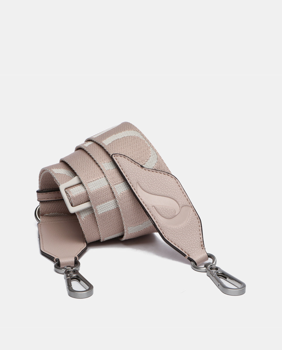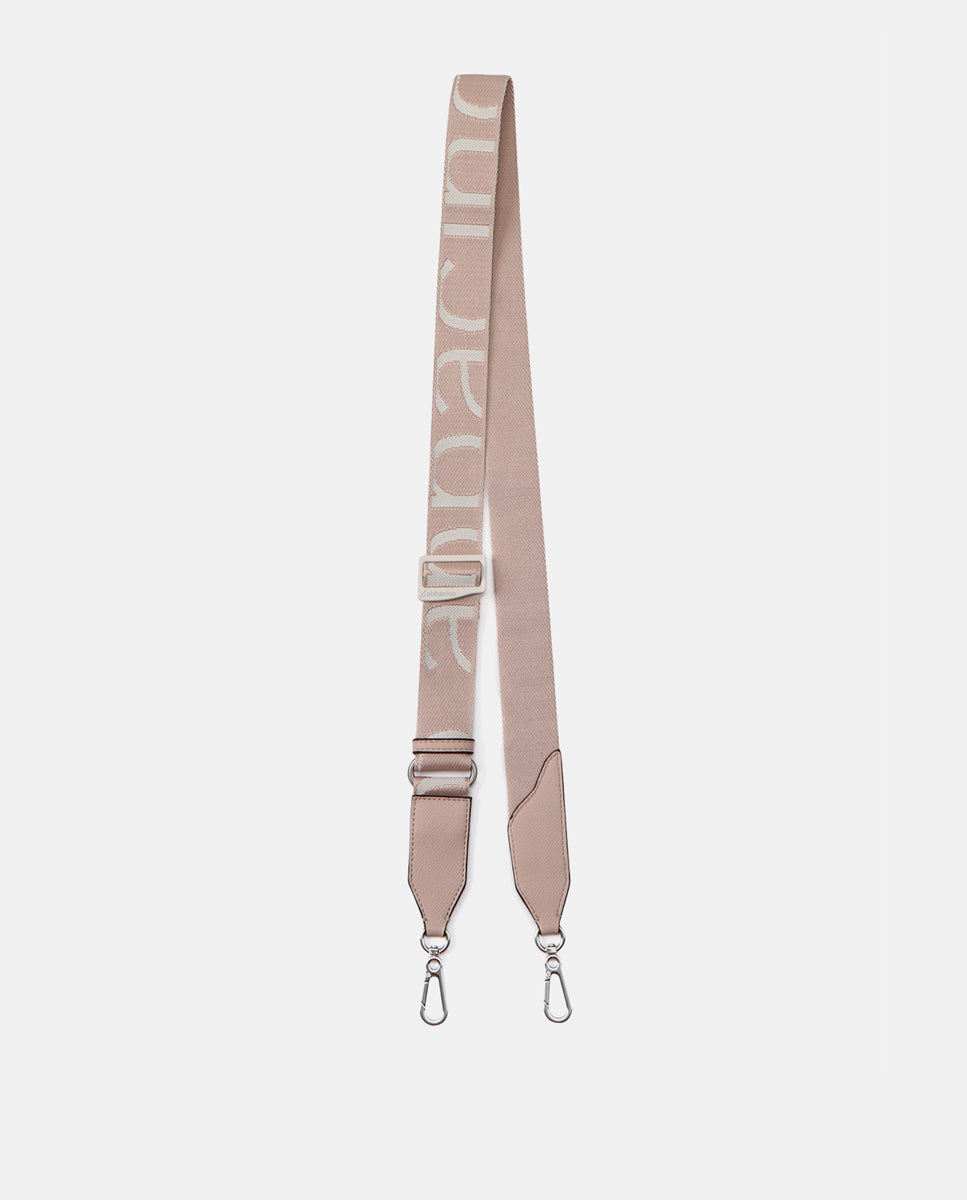 Asa bandolera regulable de quita y pon personalizada con el logotipo de la marca. Dispone de dos mosquetones en sus extremos que permiten cambiarla de un bolso a otra de forma sencilla.