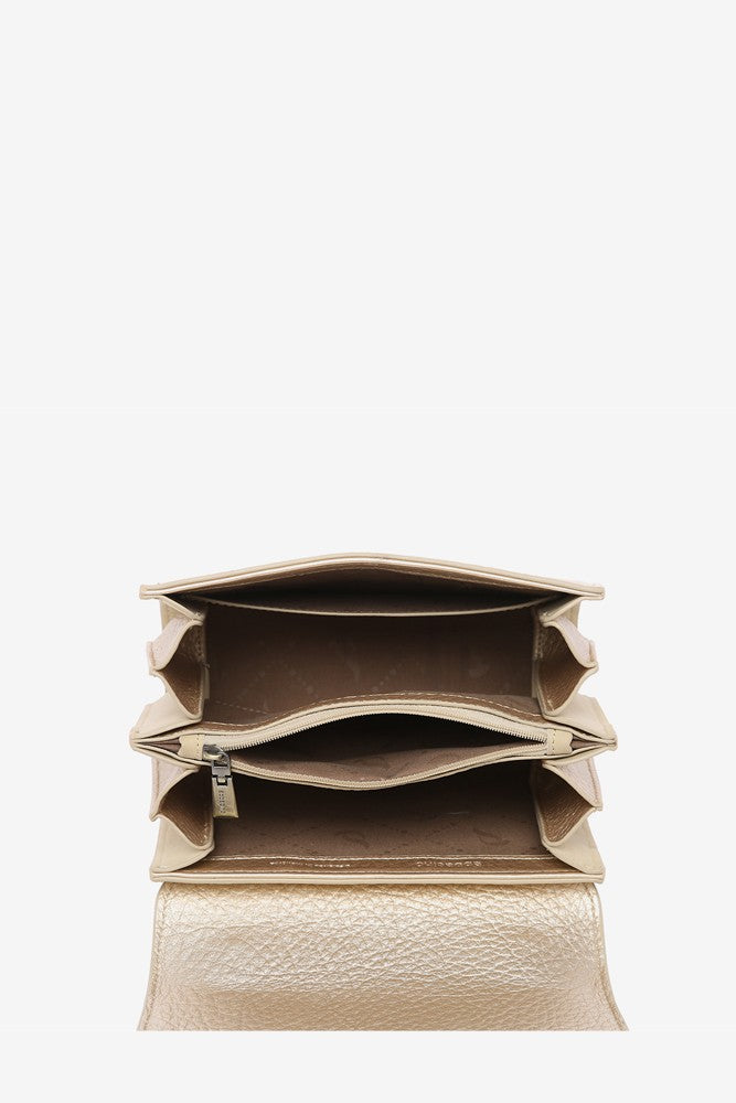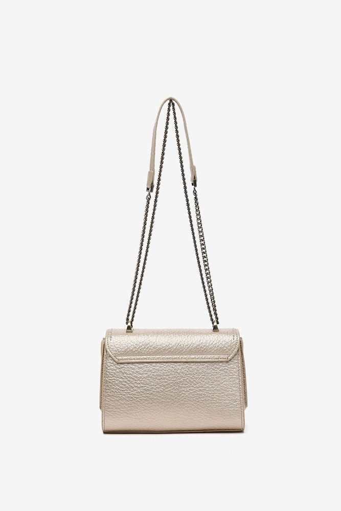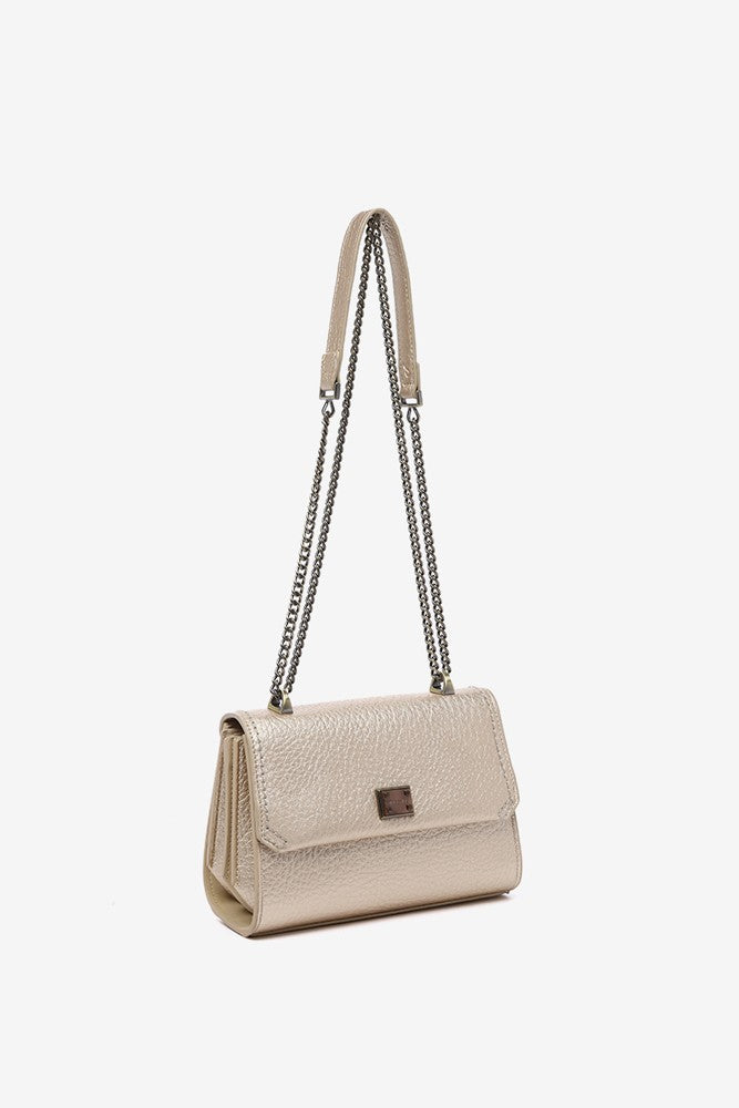 Bandolera de mujer de fiesta de líneas sencillas y estilo minimalista. Disponible en acabados metalizados, este diseño mini es ideal para llevar lo imprescindible vayas donde vayas. Sus principales características son:
