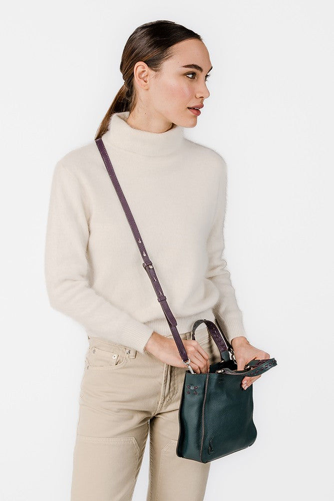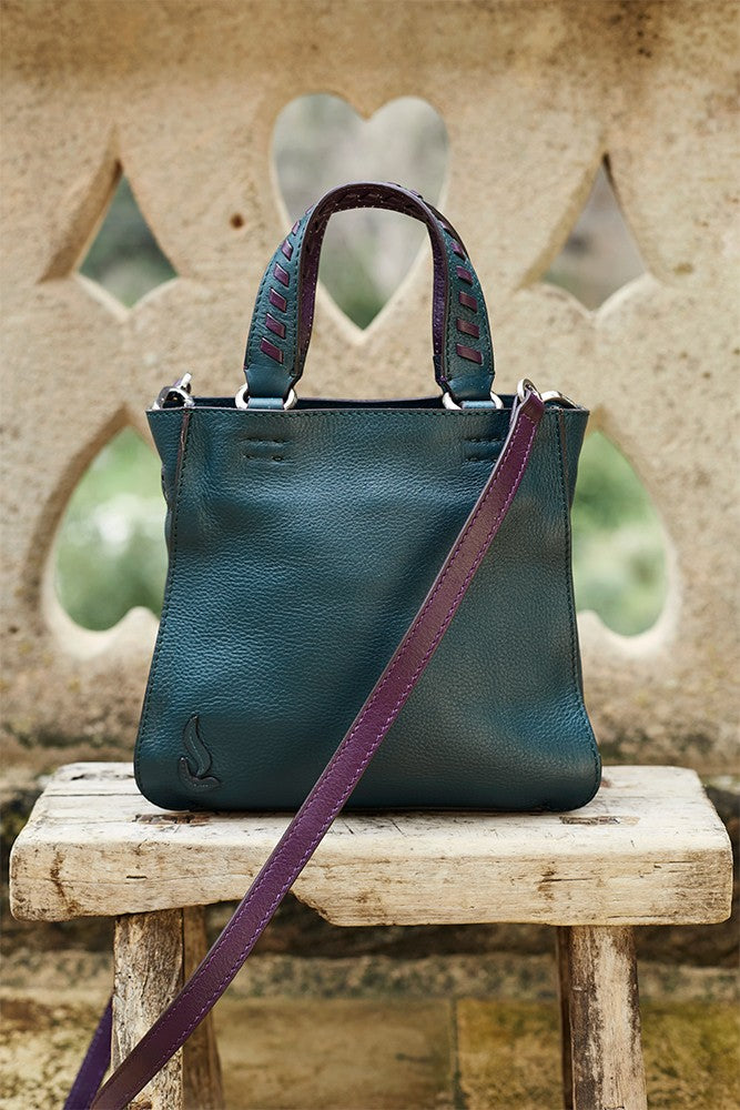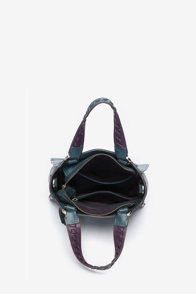 Bandolera de mujer elaborada en piel Premium. Este diseño destaca por la combinación de dos tonos de color: uno principal que tiñe el bolso, y un color complementario que viste su asa bandolera y los pequeños detalles de sus asas de mano.