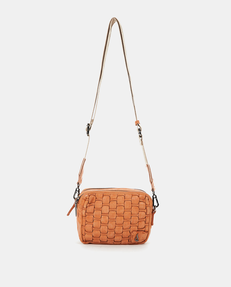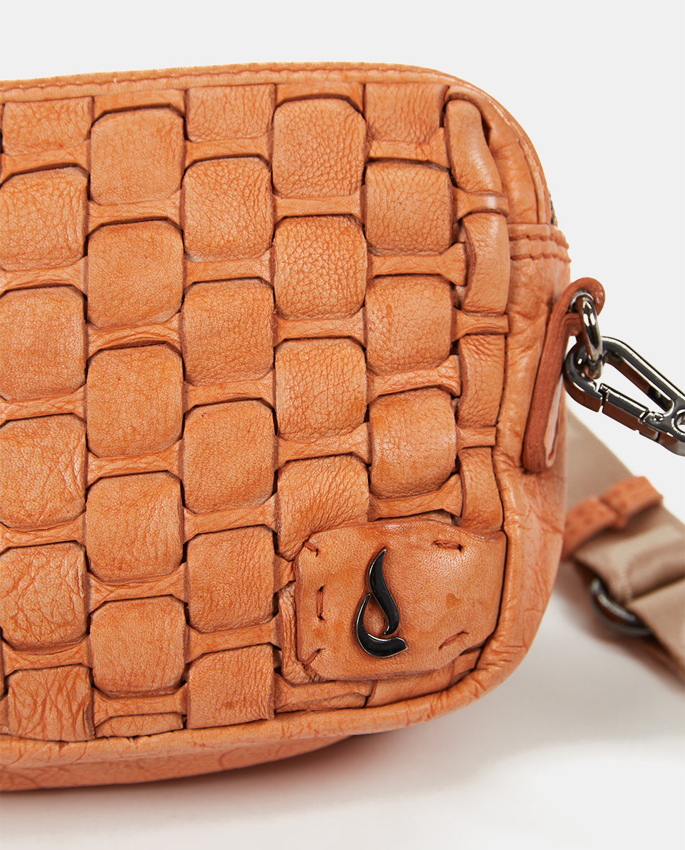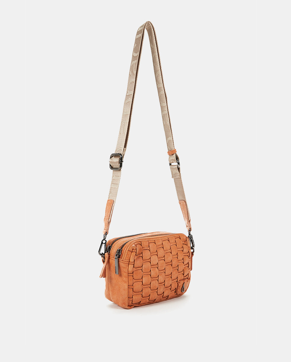 Bandolera de mujer elaborada en piel Premium. Un modelo muy cómodo y funcional sobre el que resalta un maxi trenzado. Su efecto lavado le aporta un aire muy fresco y estival.