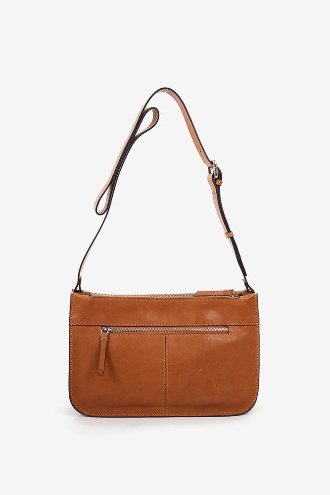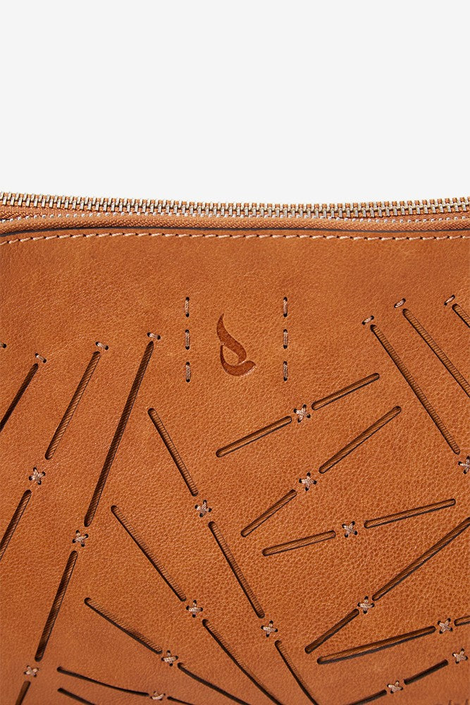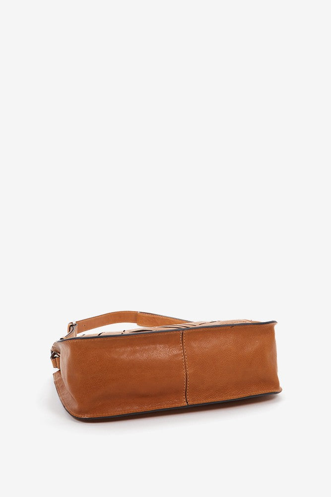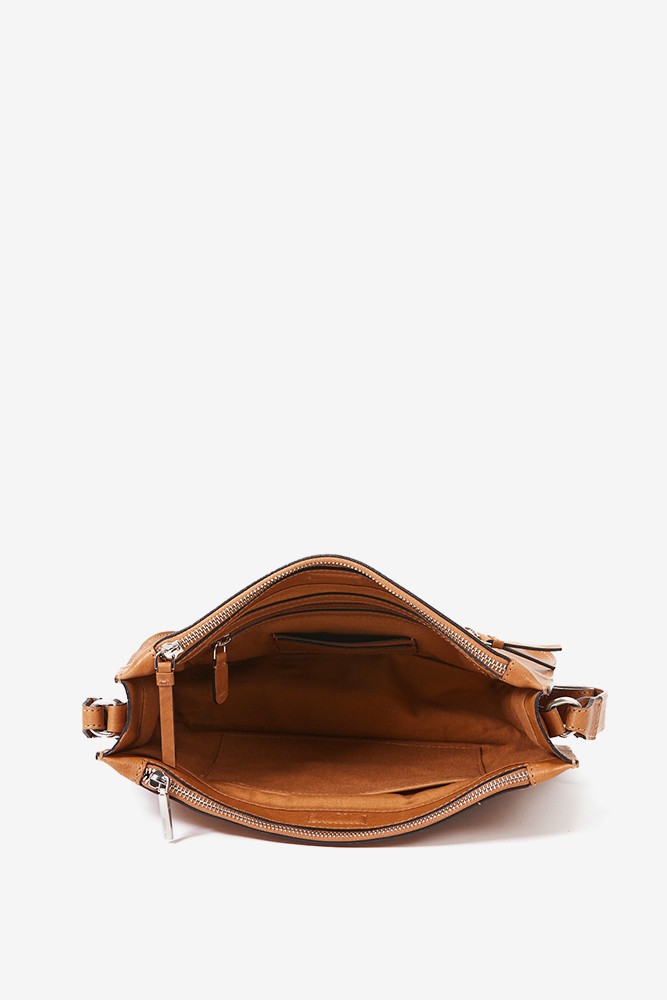 Bandolera de mujer en piel troquelada cognac