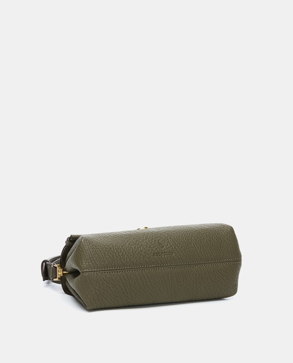 Bandolera de mujer rectangular, elaborada con materiales reciclados y teñida en tonos otoñales. Su diseño sencillo y minimalista la convierte en una opción ideal para el uso diario. Sus principales características son: