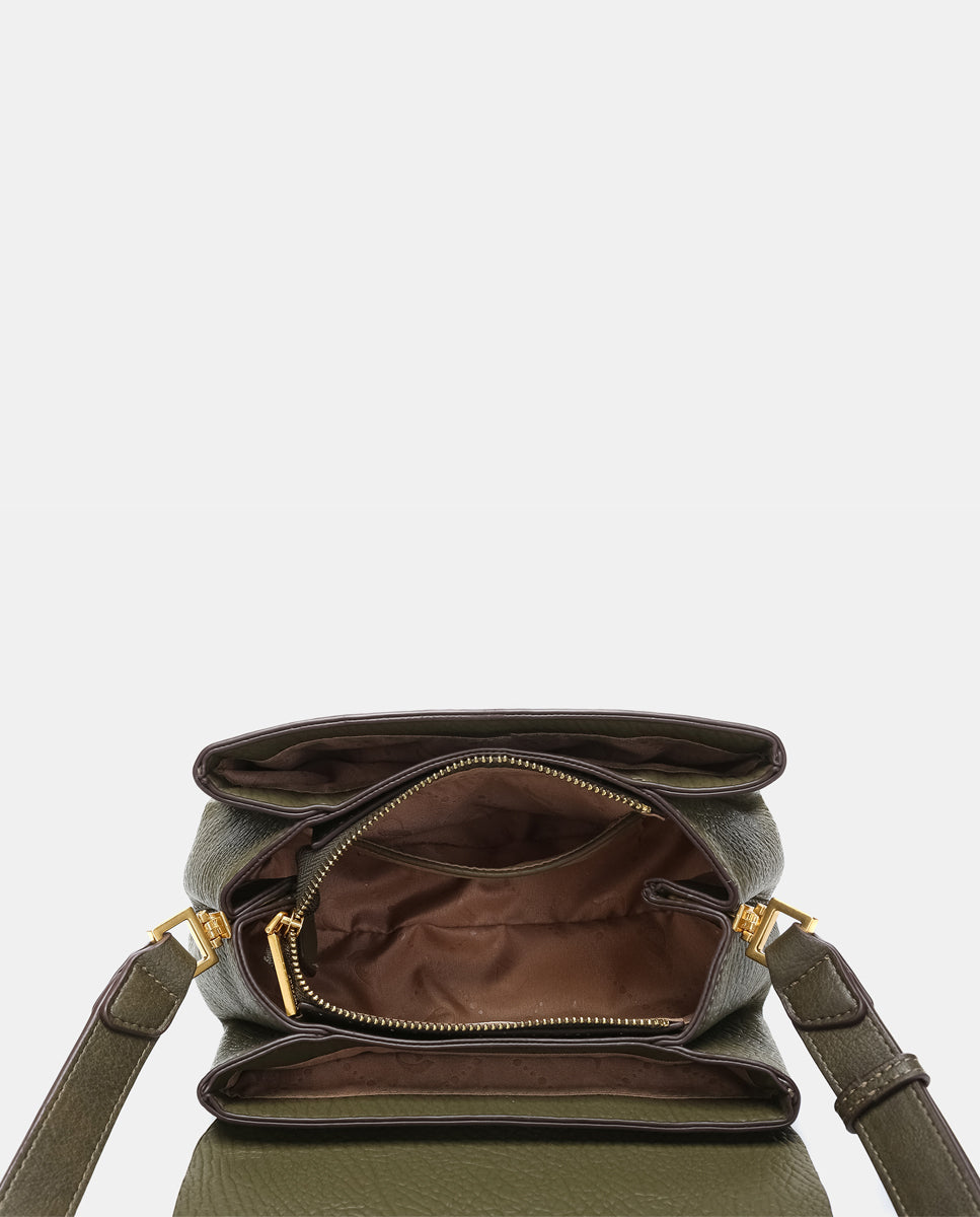 • Cierre superior con solapa, que aporta un acabado elegante.