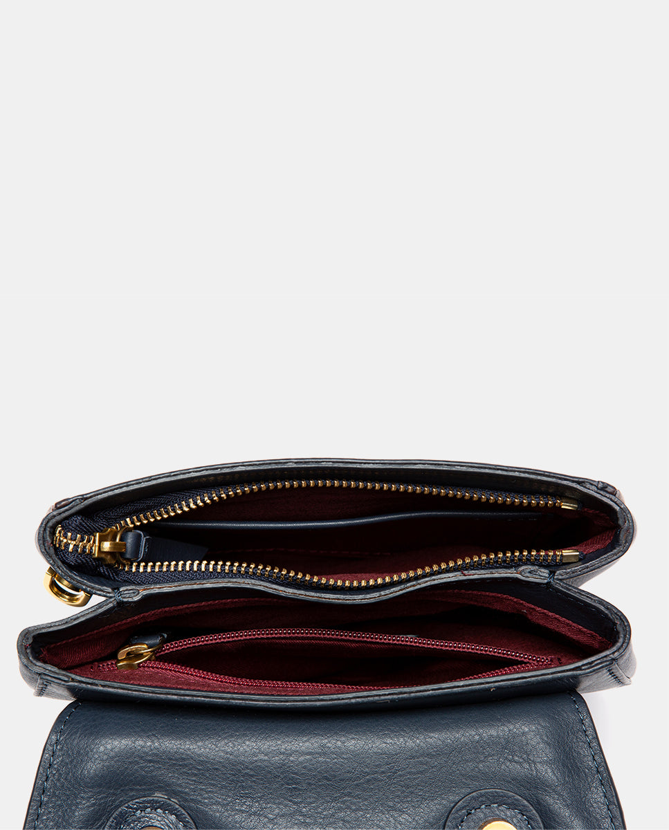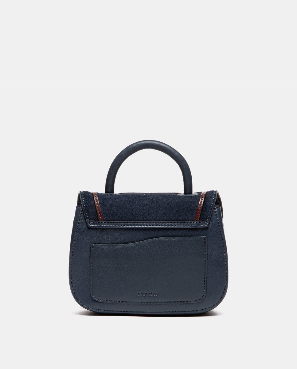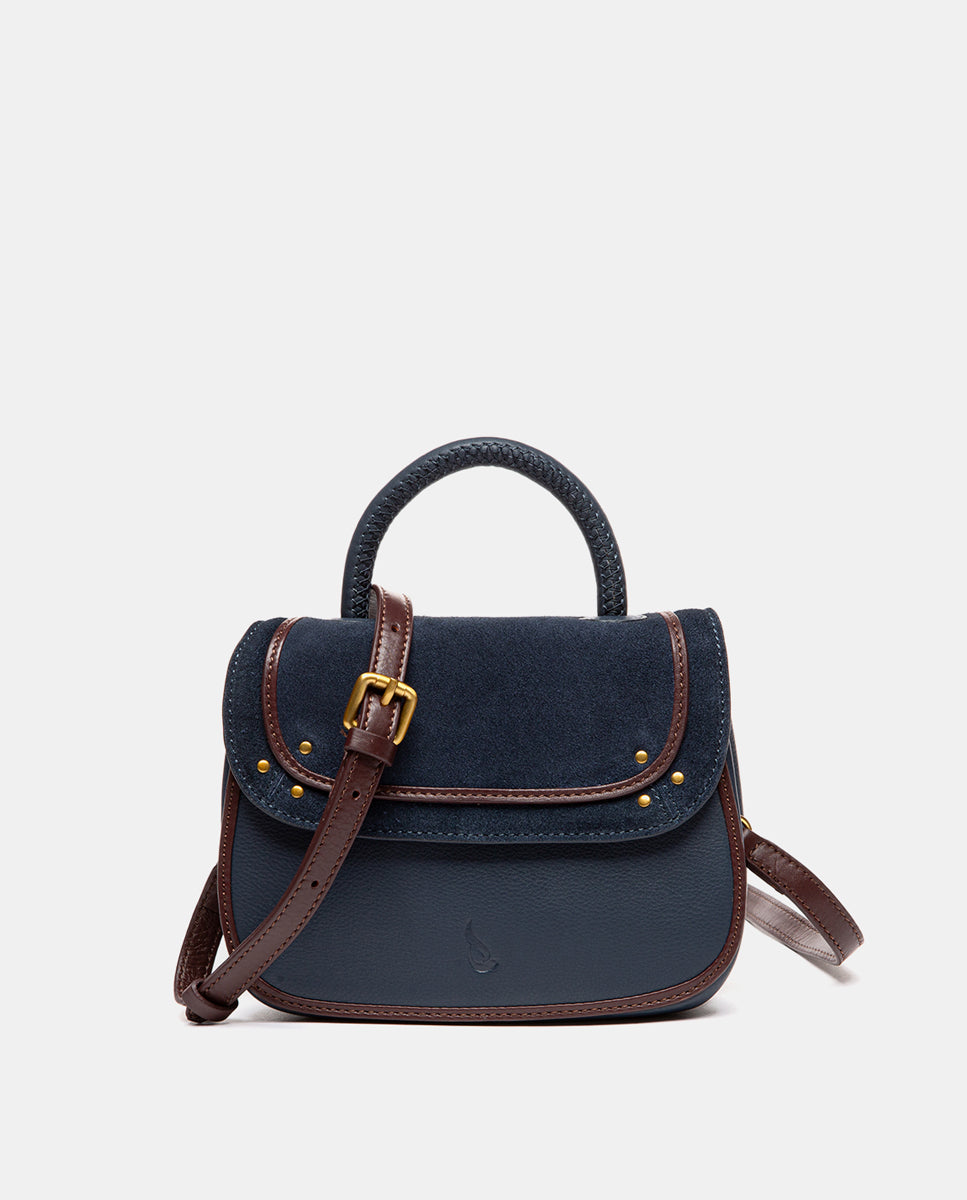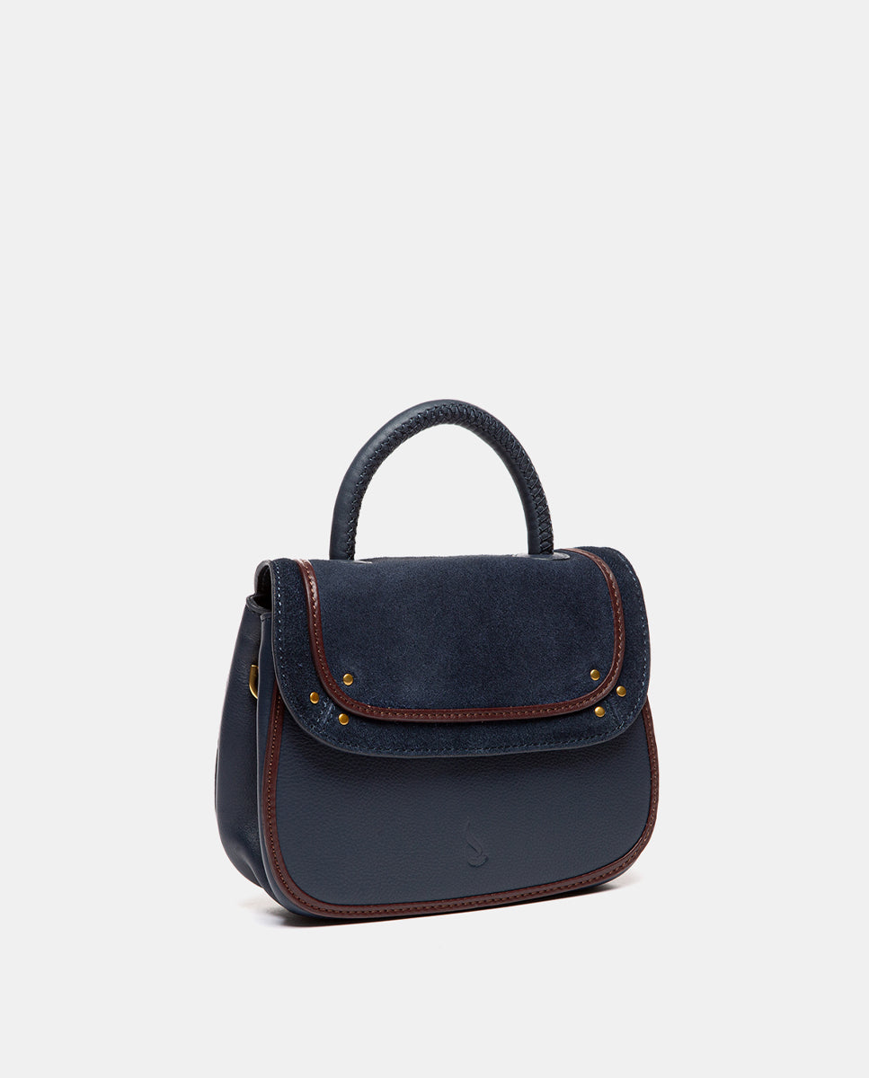 Bandolera compacta que combina piel y serraje, creando un elegante contraste de texturas. Ideal para el uso diario, destaca por sus detalles sofisticados y su diseño versátil. Sus principales características son: