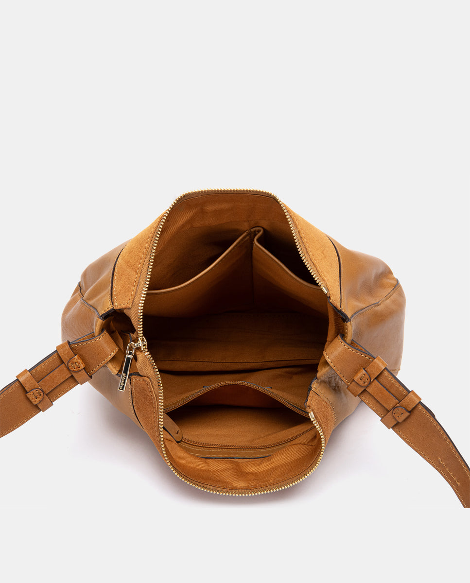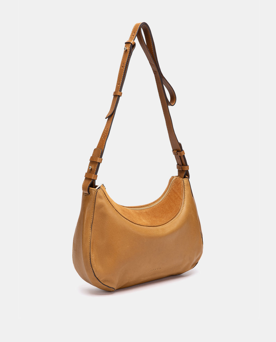 Bandolera en piel y serraje que combina elegancia y funcionalidad. Sus principales características son: