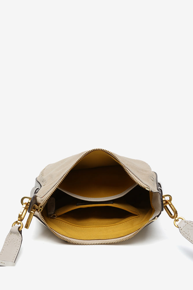 Bandolera de mujer con silueta curva en piel de serraje Premium. Un modelo en colores atemporales y muy fáciles de combinar que refleja elegancia y un aire clásico. Sus principales características son: