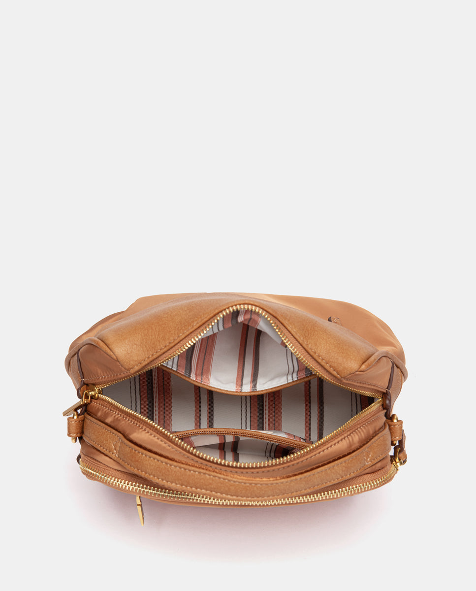 Bandolera en tejido cognac