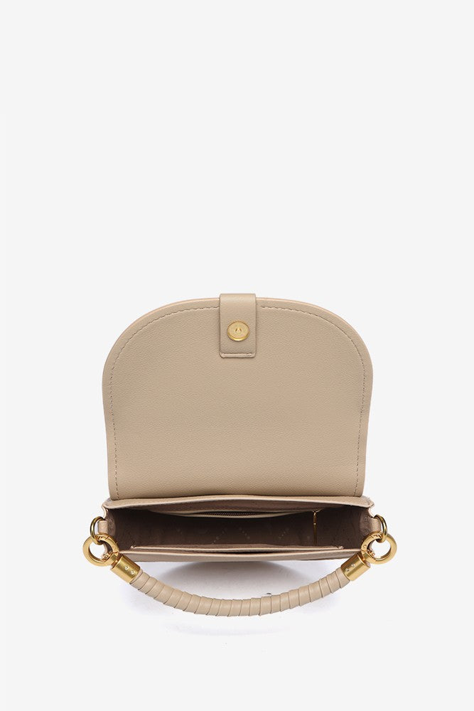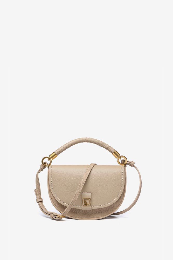 Bandolera de mujer en formato medialuna elaborada en materiales reciclados. Una nueva silueta en nuestro catálogo que persigue las últimas tendencias del momento. Su estilo juvenil, sus líneas puras y sencillas, sus detalles dorados y su gama de color hacen de este complemento un diseño muy especial y una auténtica joya esta temporada. Sus principales características son