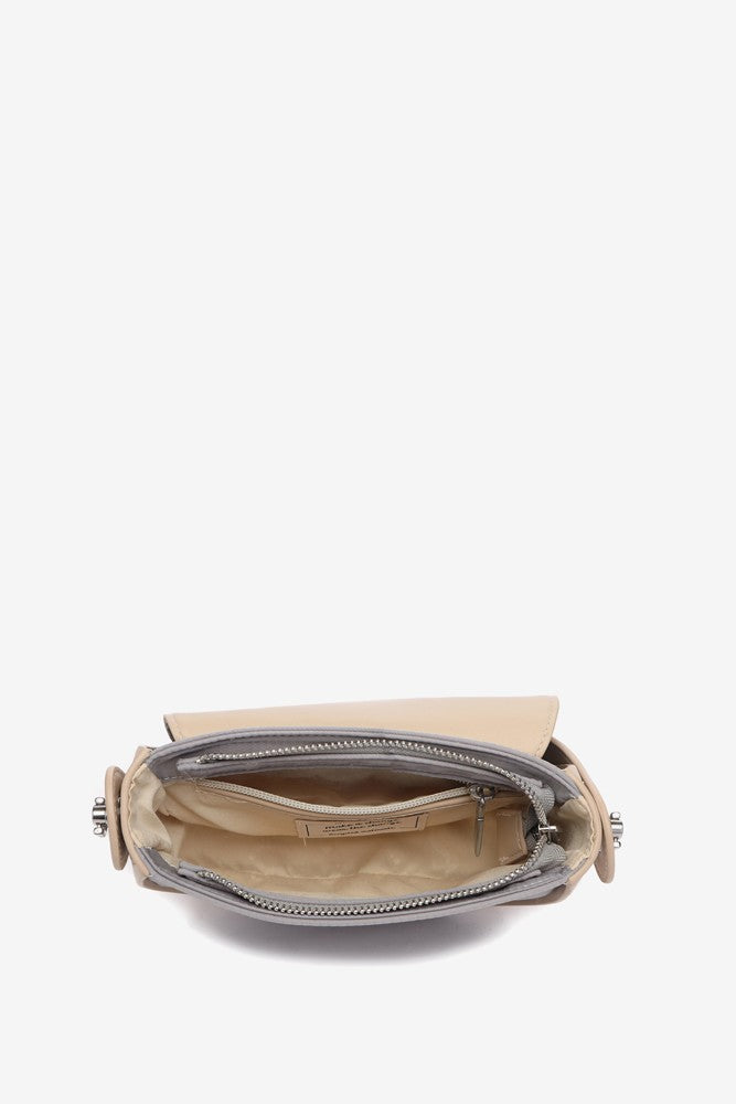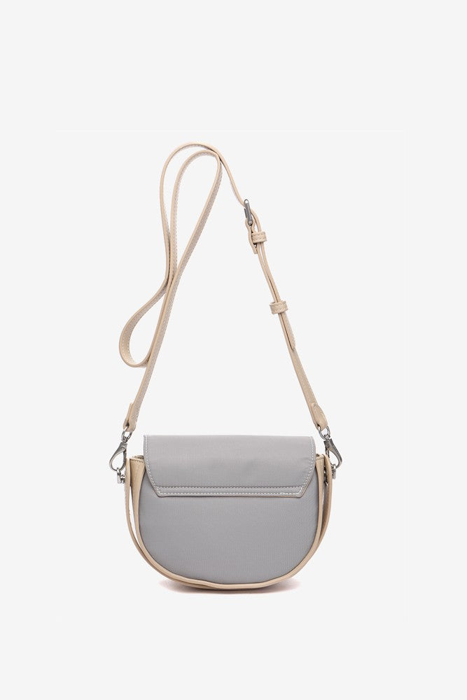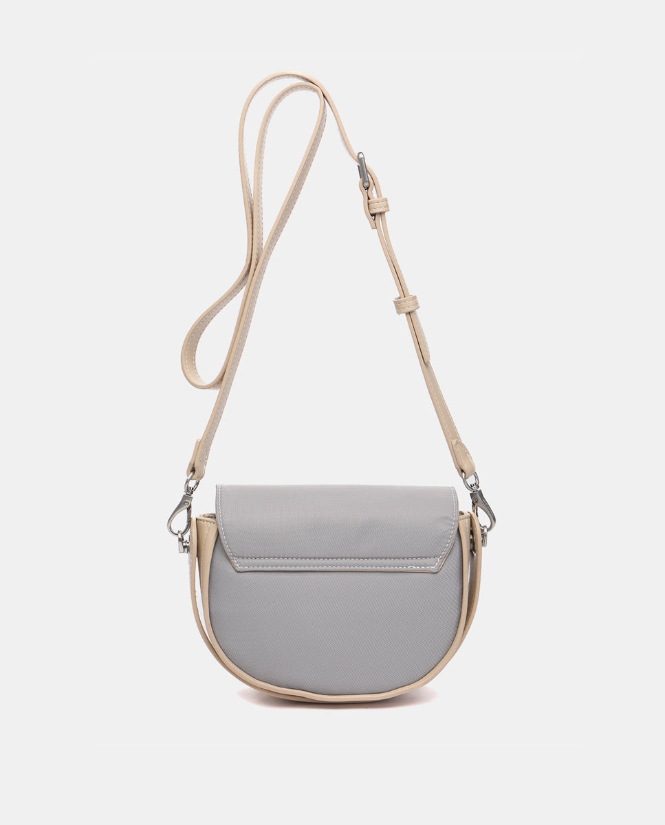Bandolera pequeña de mujer elaborada con materiales reciclados y con un sutil acabado satinado, propio de su tejido. Un modelo todoterreno y de estilo casual ideal para un uso diario. Sus principales características son: