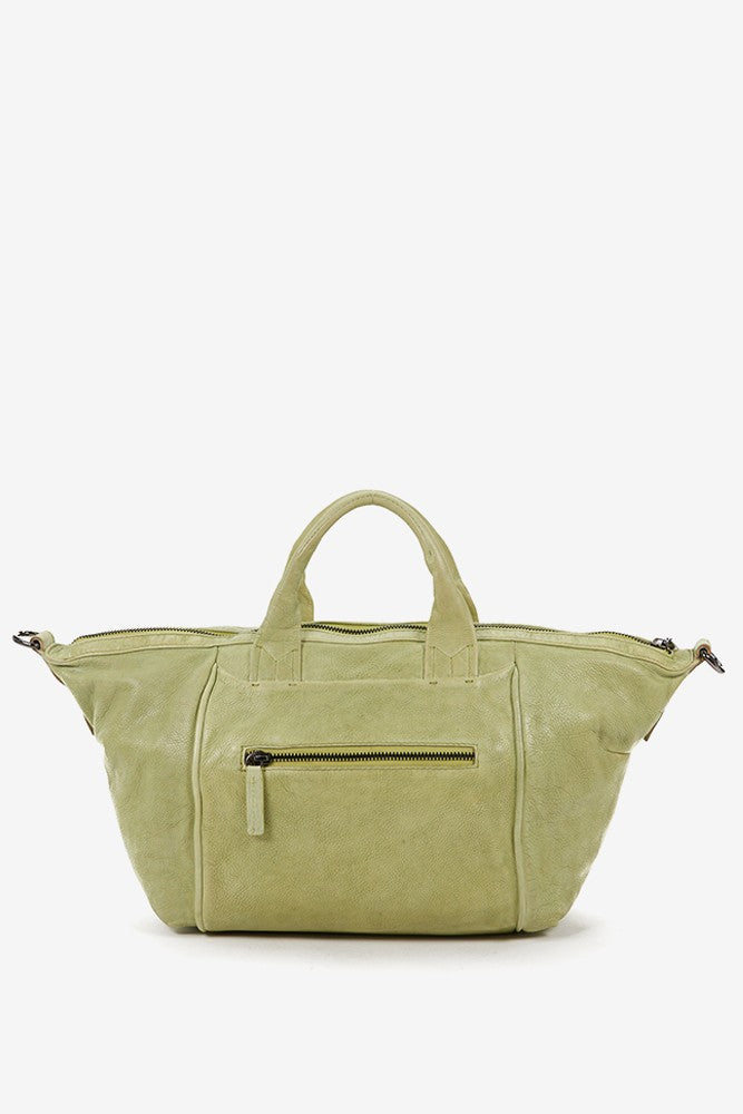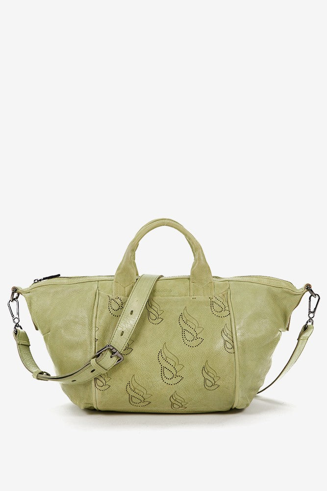 Bolso estilo bowling elaborado en piel Premium. Un diseño que destaca por su troquel con el logotipo de la marca sobre el bonito efecto de la piel lavada. Una original apuesta para esta nueva temporada. De inspiración mediterránea, se trata de un modelo holgado y con una estética muy especial.