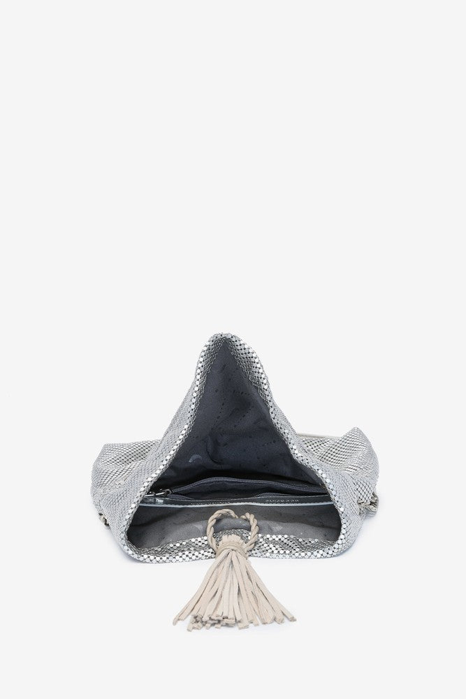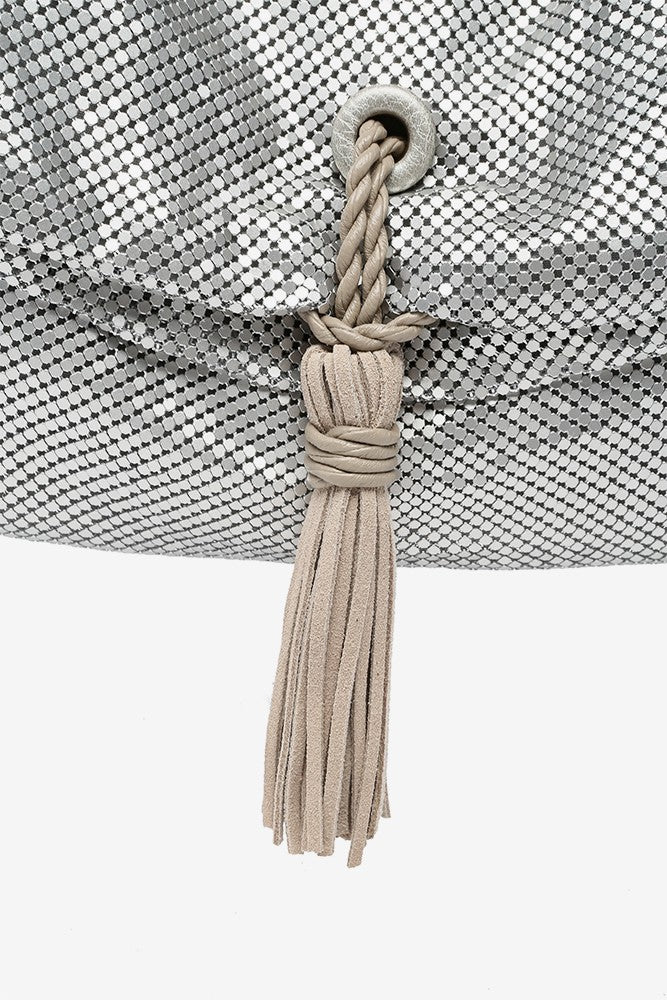 Un bolso de fiesta original y atrevido que te hará brillar allá dónde vayas. Este modelo es una opción ideal para crear looks únicos con los que no pasarás desapercibida. Un diseño en forma rectangular elaborado con malla metálica ideal para ocasiones especiales.
