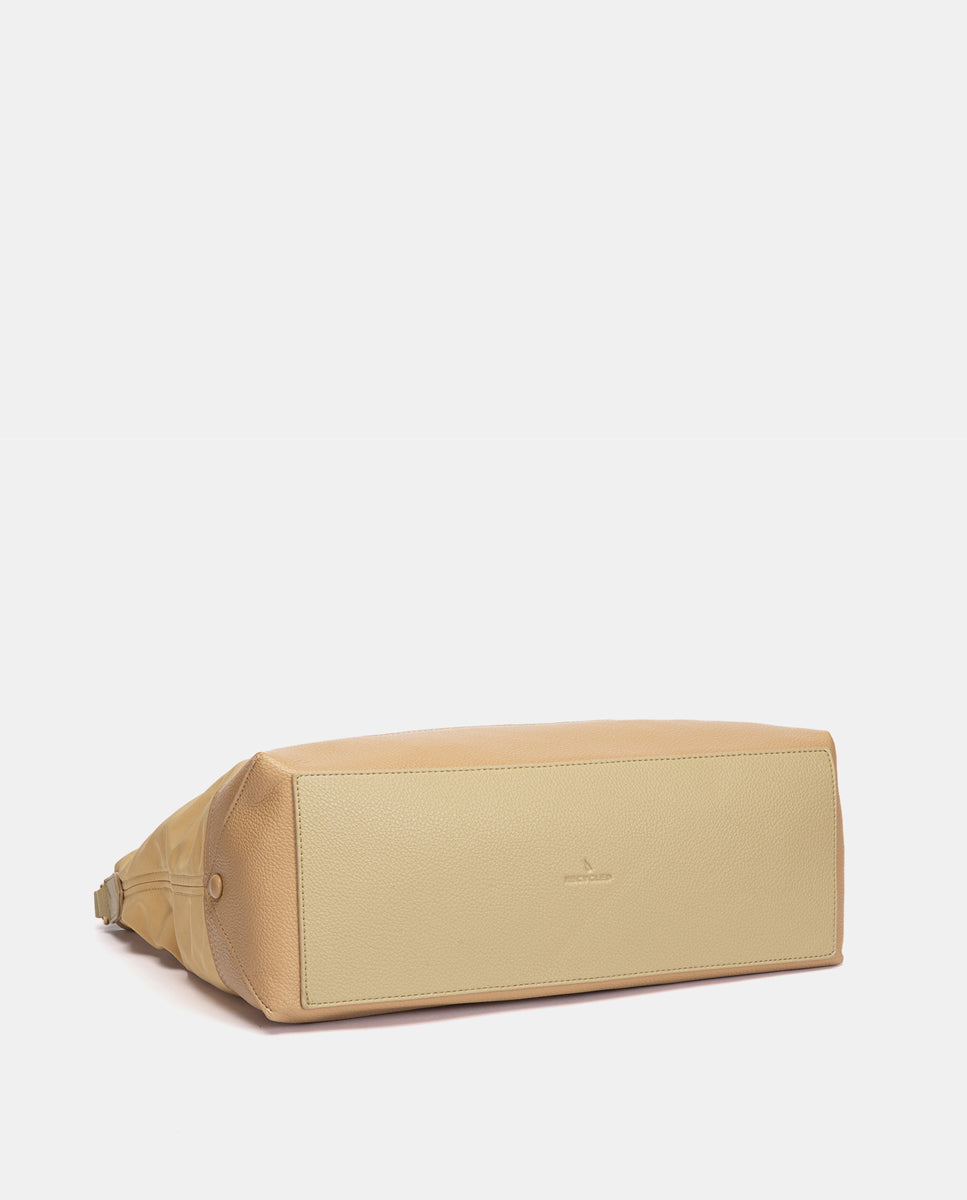 Bolso de hombro de mujer elaborado con materiales reciclados, que combina dos tonalidades de color. Sus principales características son: