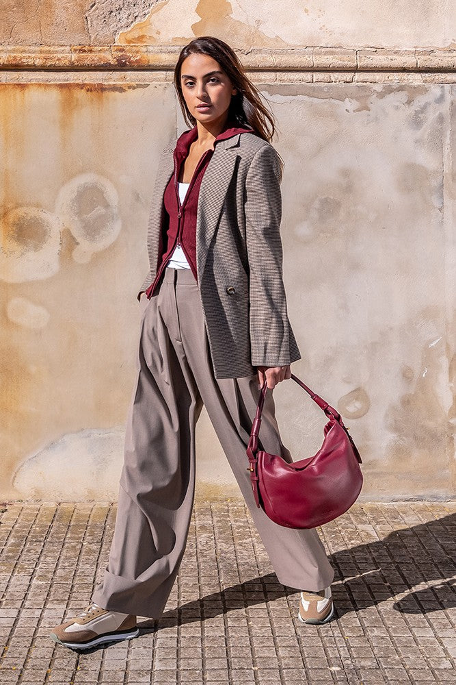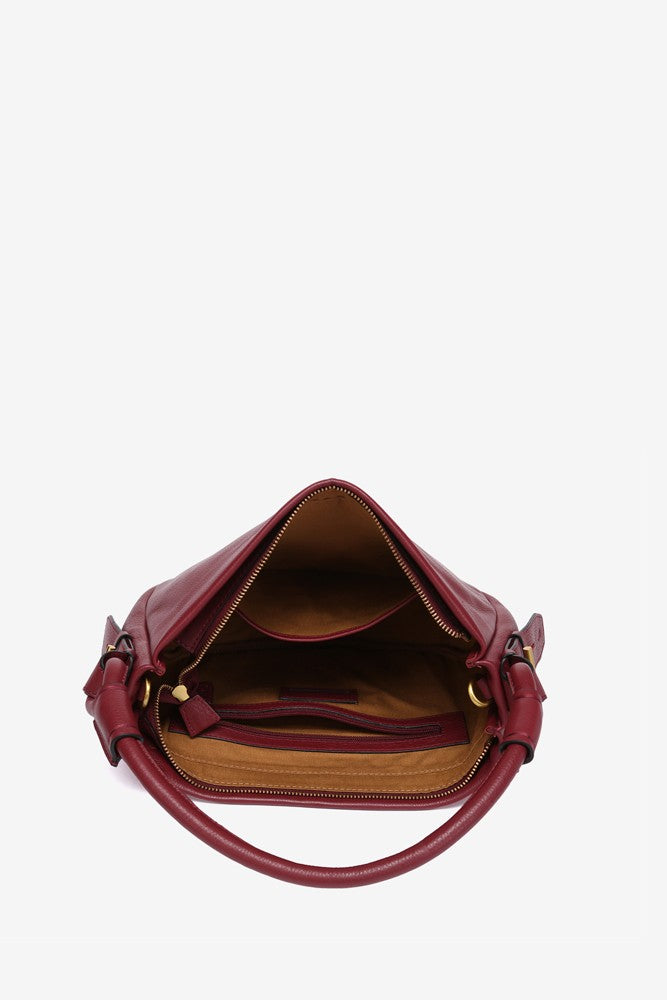 Bolso de hombro en piel burdeos