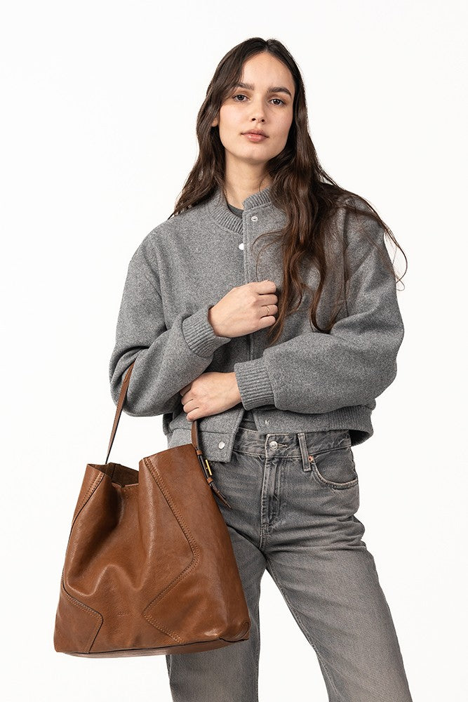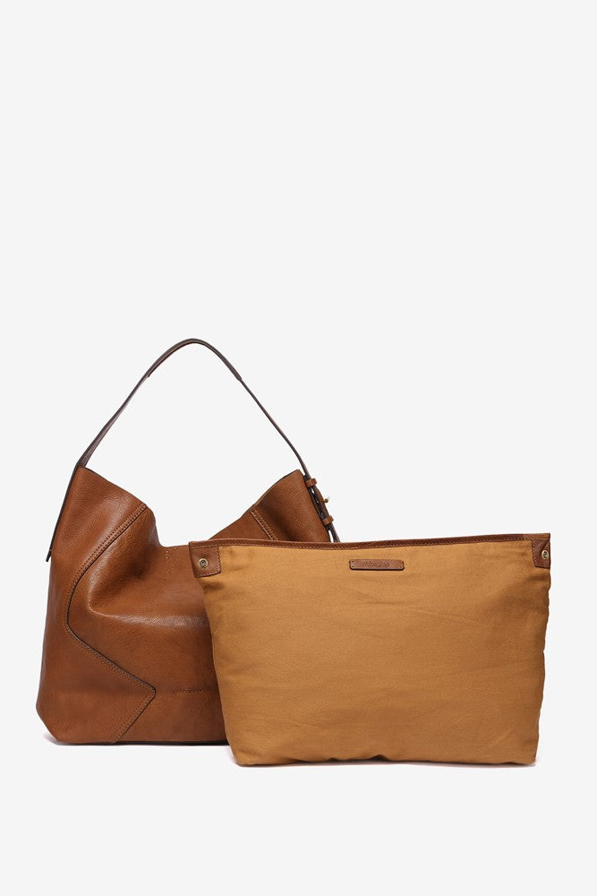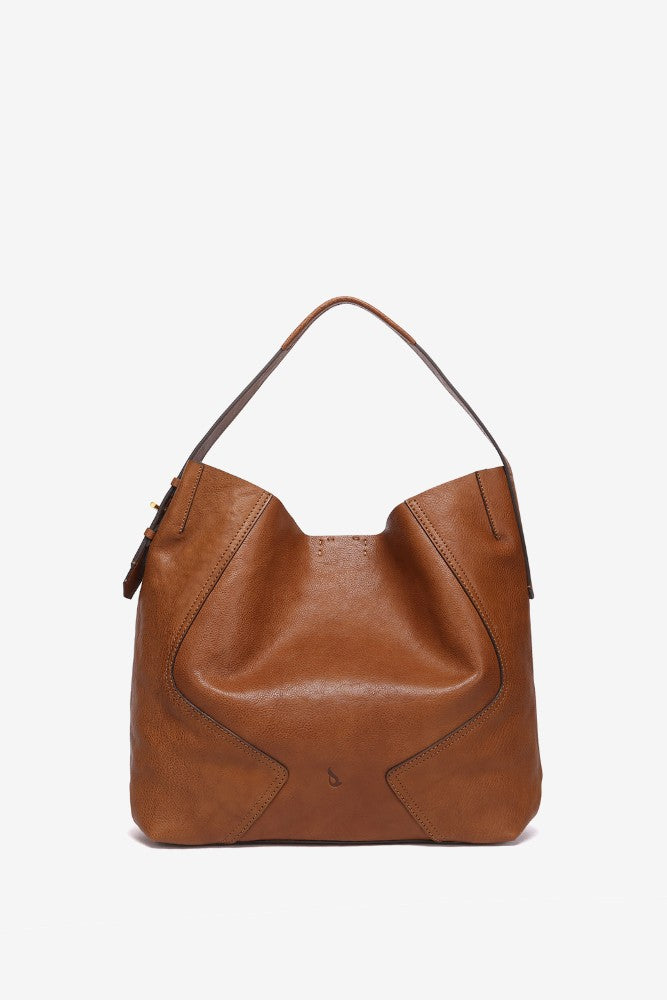 Bolso de hombro estilo hobo elaborado con piel Premium, suave y fluida. Amplio, ligero y funcional, este modelo destaca por el efecto geométrico creado por la superposición de retales de piel. Sus principales características son:
