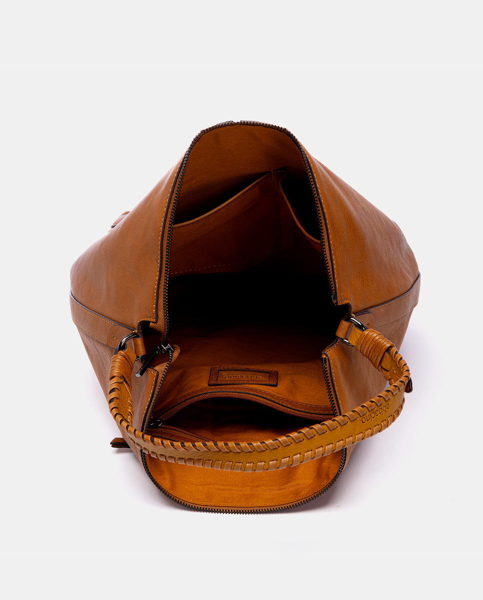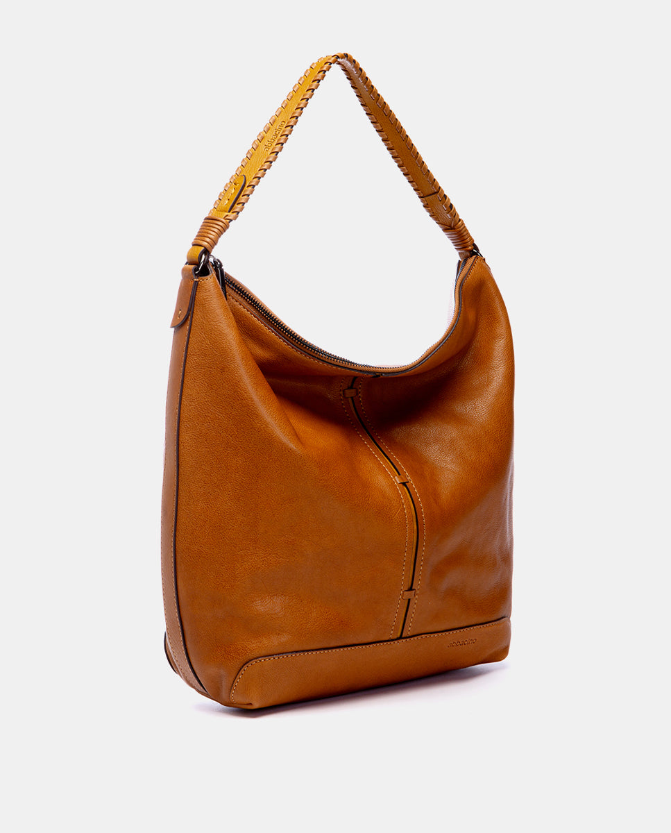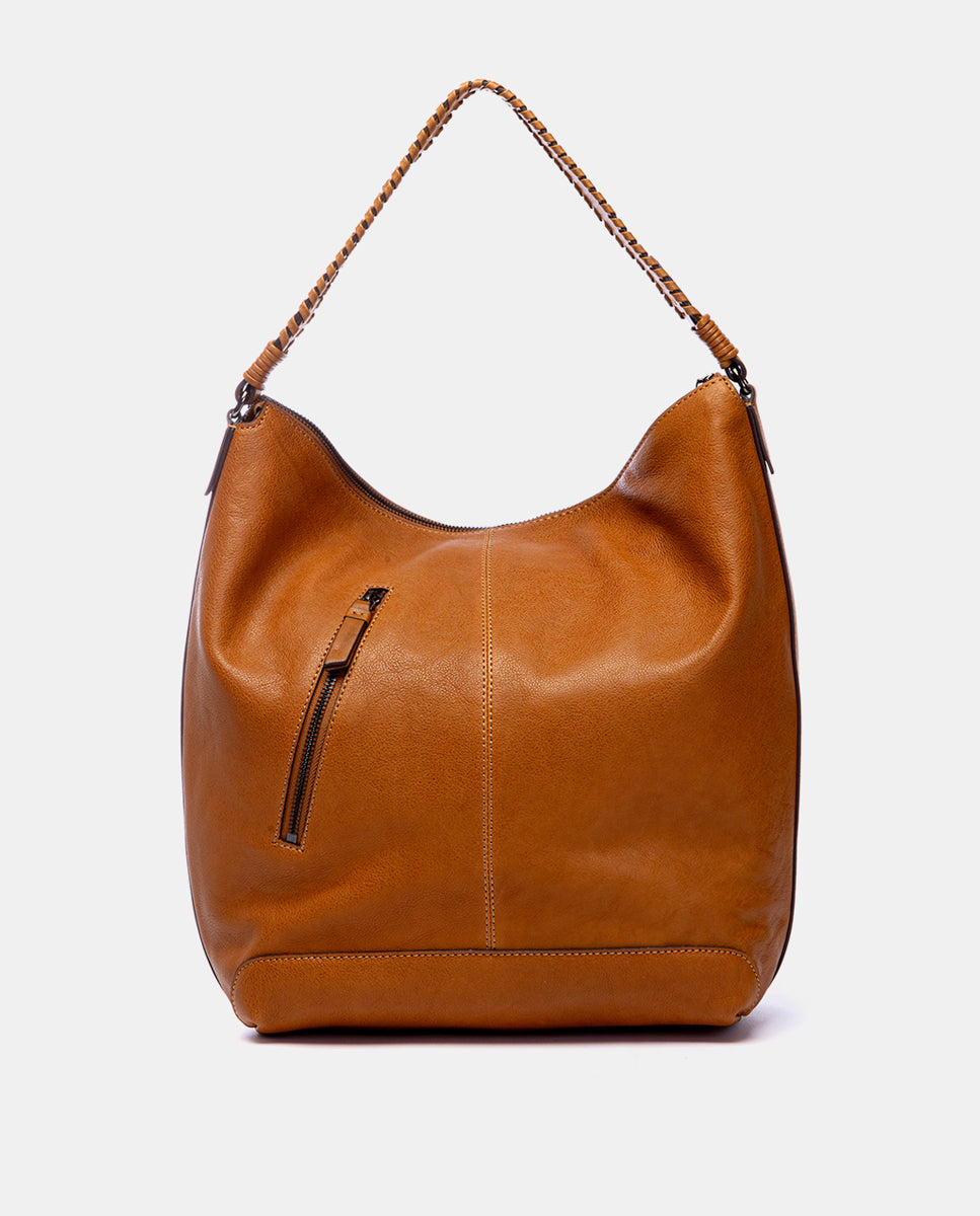 Bolso de hombro de piel estilo hobo con silueta fluida y diseño minimalista. Sus principales características son: