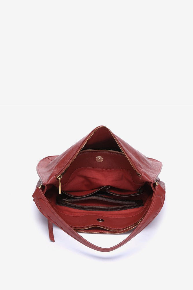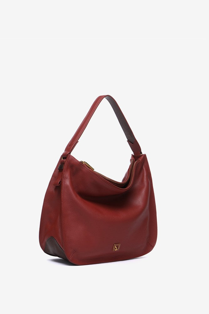 Bolso de hombro estilo hobo elaborado en piel Premium. Un diseño de corte clásico y minimalista con pequeños detalles en dorado, como sus cremalleras y mosquetones. Un auténtico fondo de armario atemporal, elegante y práctico. Sus principales características son: