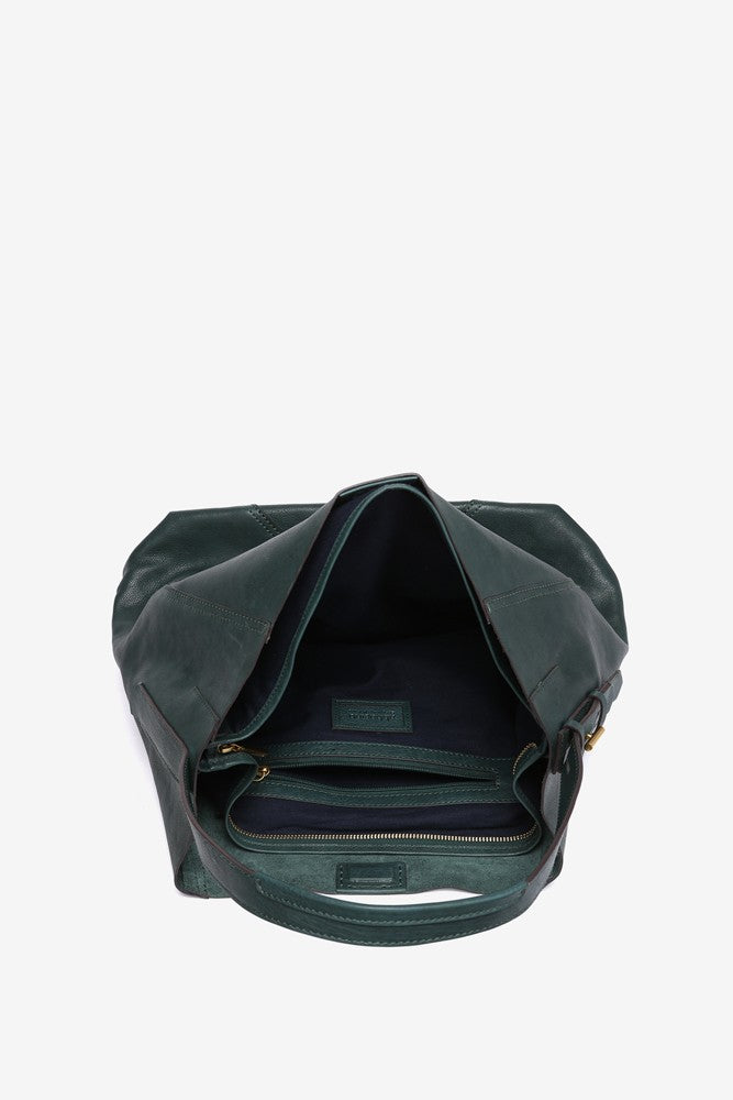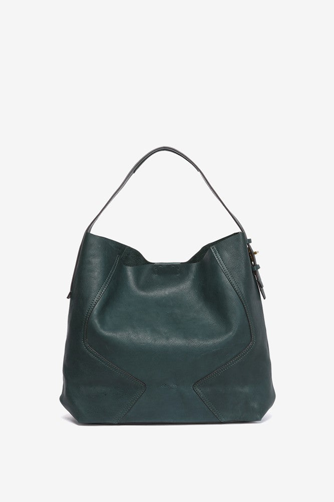 Bolso de hombro estilo hobo elaborado con piel Premium, suave y fluida. Amplio, ligero y funcional, este modelo destaca por el efecto geométrico creado por la superposición de retales de piel. Sus principales características son: