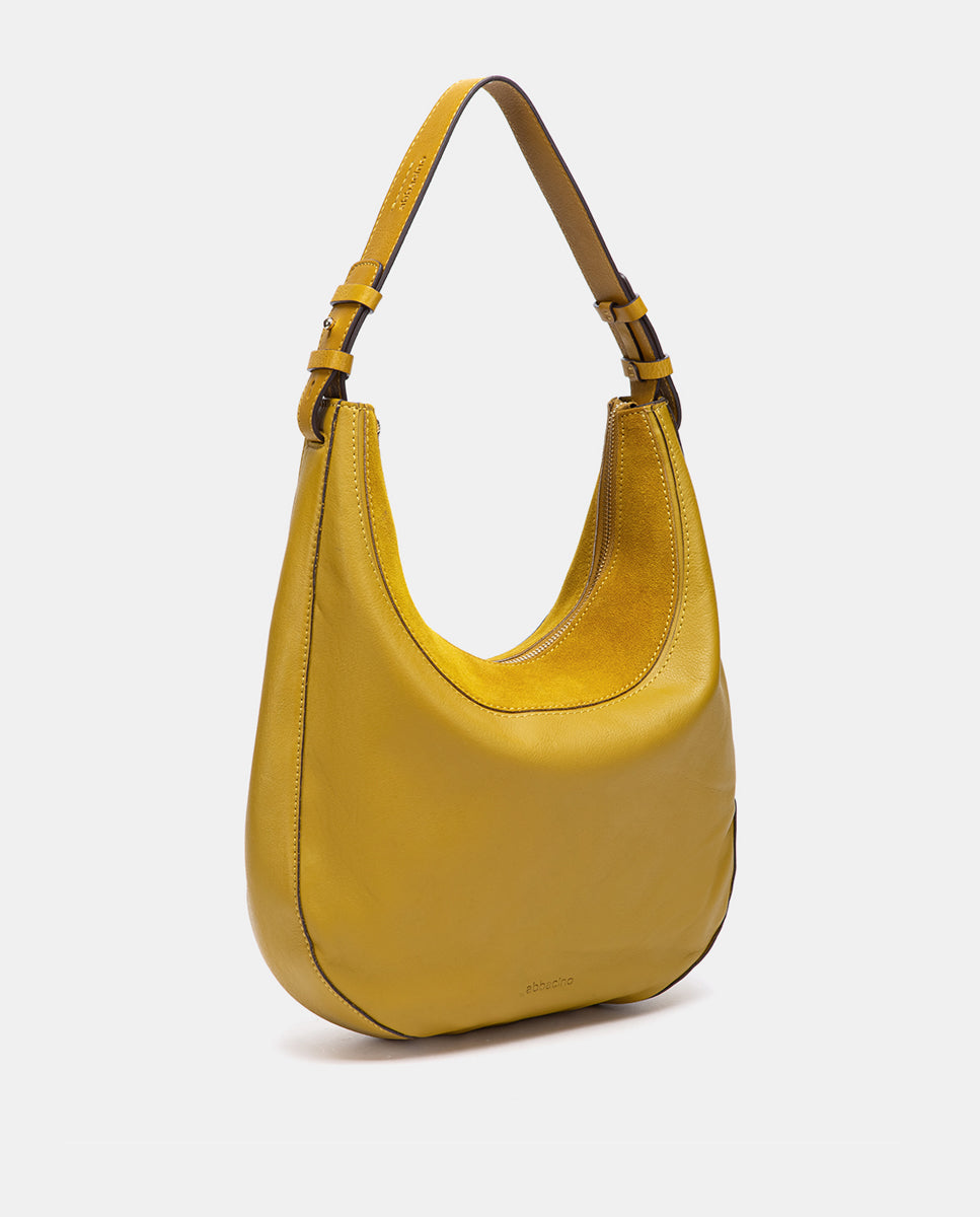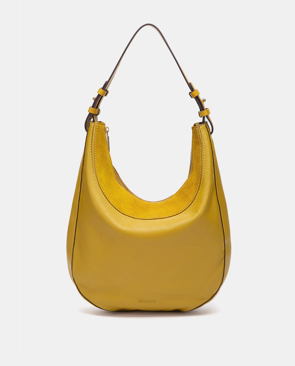 Bolso de hombro en piel y serraje amarillo