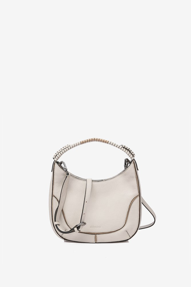 Bolso de hombro pequeño de mujer elaborado en piel Premium. Un diseño de corte clásico y minimalista con pequeños detalles trenzados en su asa. Un auténtico fondo de armario atemporal, elegante y práctico. Sus principales características son: