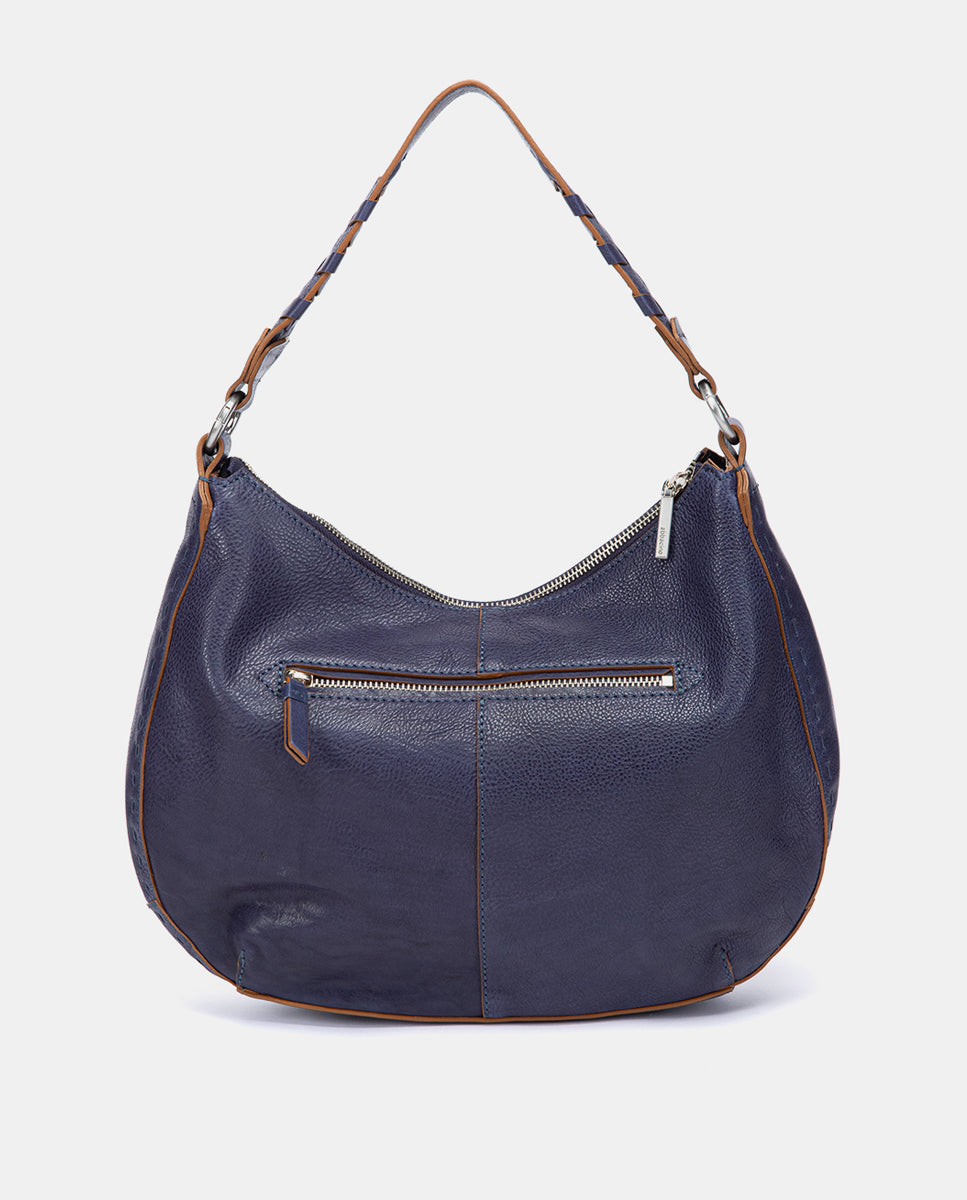 Bolso de hombro pequeño estilo hobo confeccionado en piel de acabado natural, con una textura suave y flexible que aporta un aire desenfadado y elegante al mismo tiempo. Sus principales características son: