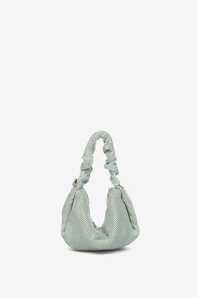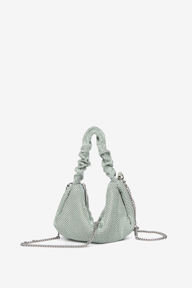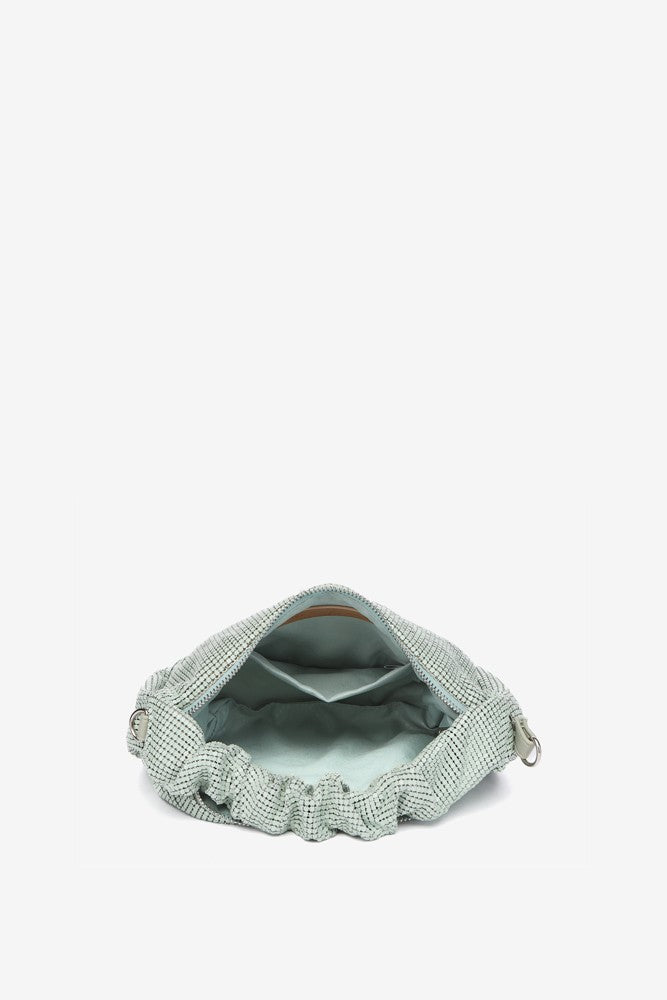 Bolso de mano de fiesta de mujer en forma de media luna elaborado en malla metálica. Un diseño que se viste en los colores de temporada con el que brillarás allá donde vayas, perfecto para la noche y el día, es la opción ideal para crear looks únicos. Sus principales características son: