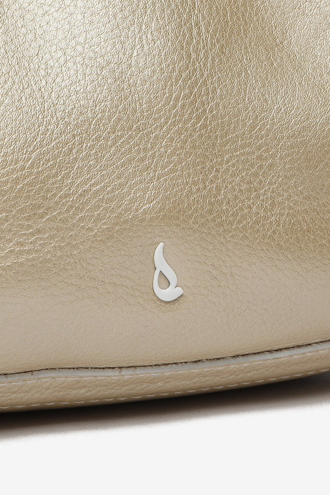 • Su exterior, se caracteriza por las costuras visibles, el cierre superior magnético y un pequeño aplique metálico con el logotipo de la marca.