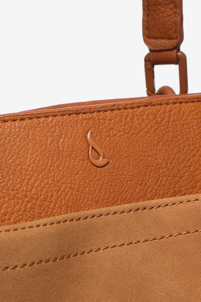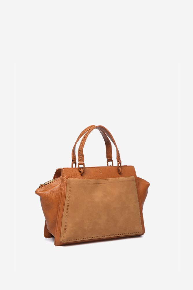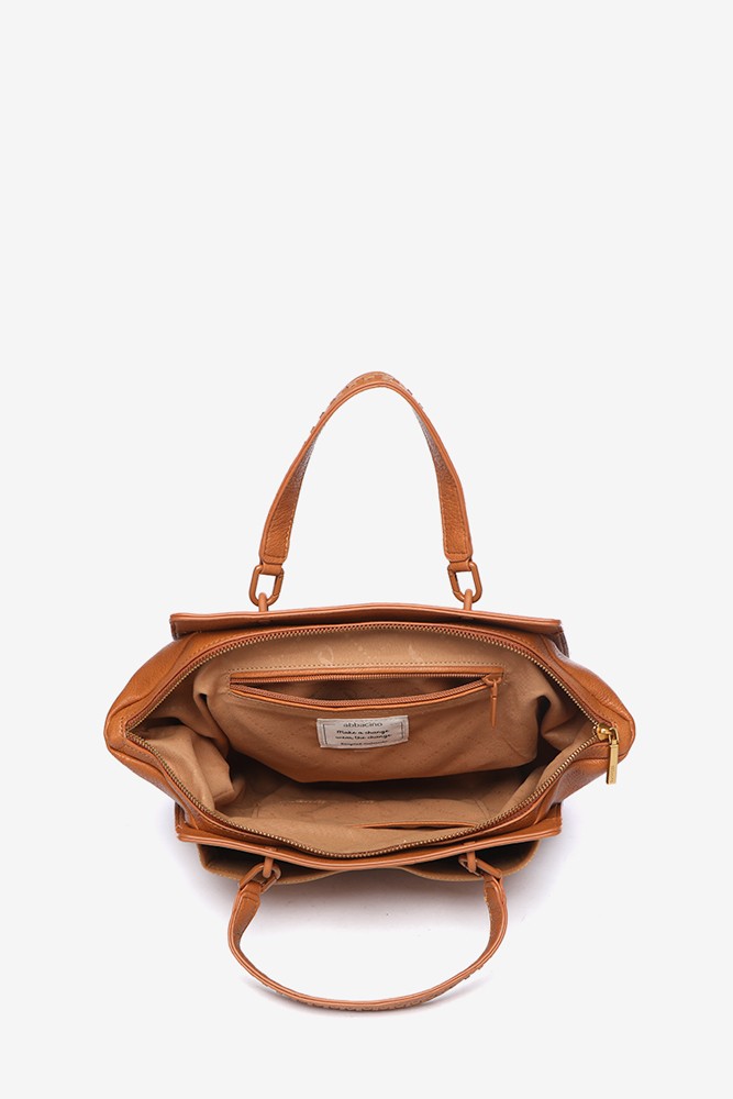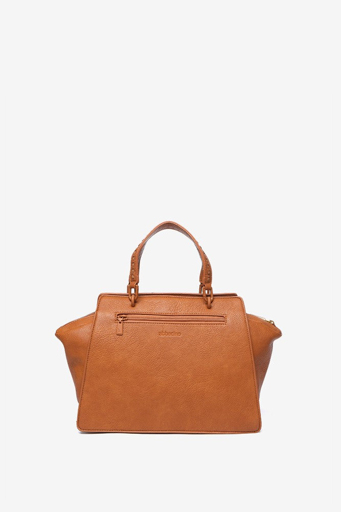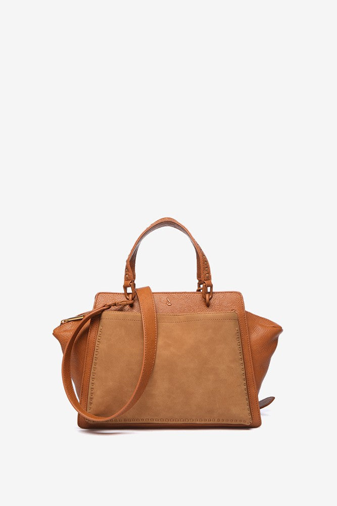 • Combina asas de mano con detalles trenzados con una práctica bandolera que puede regularse y es de quita y pon.