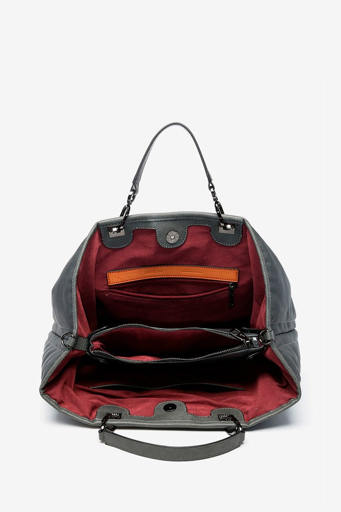 • Combina sus asas de mano con bonitos apliques metálicos con una práctica bandolera, que ayuda a adquirir un tono sutilmente más casual.