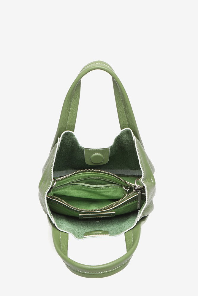 Bolso de mano pequeño de piel que une la elegancia clásica y los colores de tendencia. Ligero, práctico y estiloso ha sido elaborado en piel Premium. Sus principales características son: