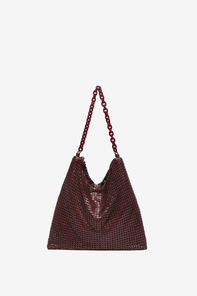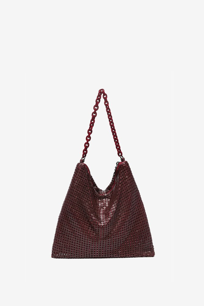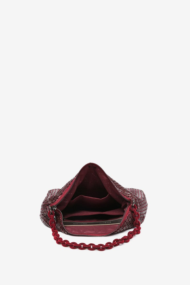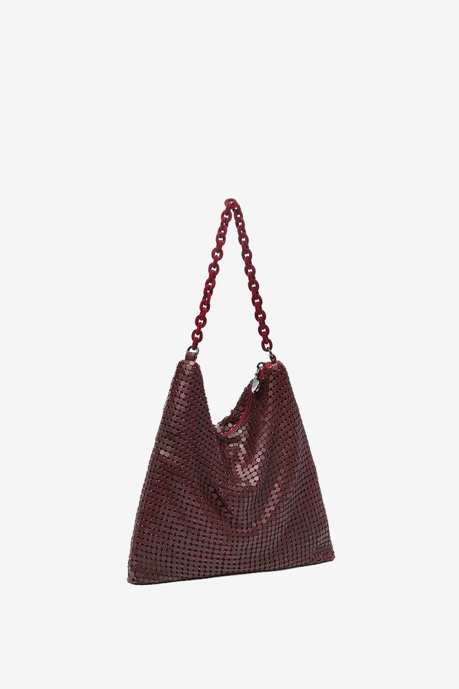 Bolso hobo de fiesta en malla metálica en burdeos