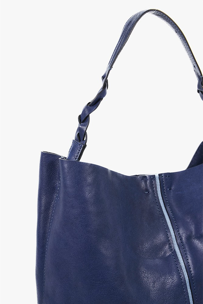 Bolso de hombro estilo hobo grande elaborado en piel Premium. Un diseño que destaca por su amplitud y su tacto holgado, además de un bonito detalle trenzado en su asa. Teñido en colores atemporales y fácimente combinables.