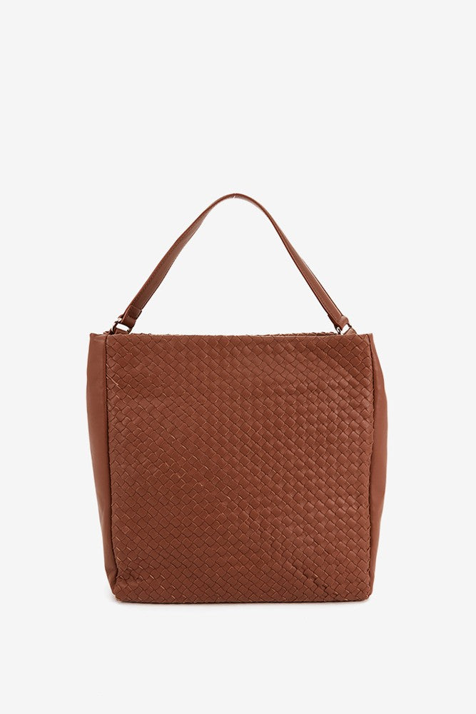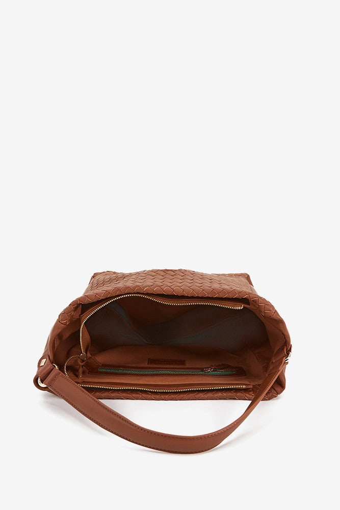 Bolso hobo de mujer en piel Premium trenzada artesanalmente y elaborado en Italia. Un diseño amplio, perfecto para el día a día, teñido en colores otoñales muy fáciles de combinar y de inspiración mediterránea.