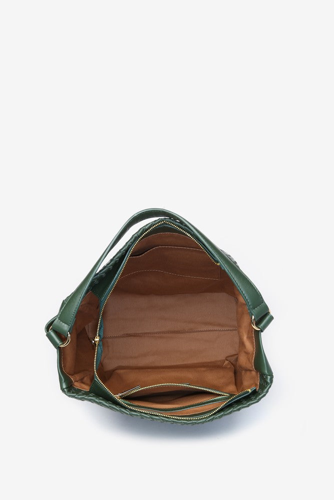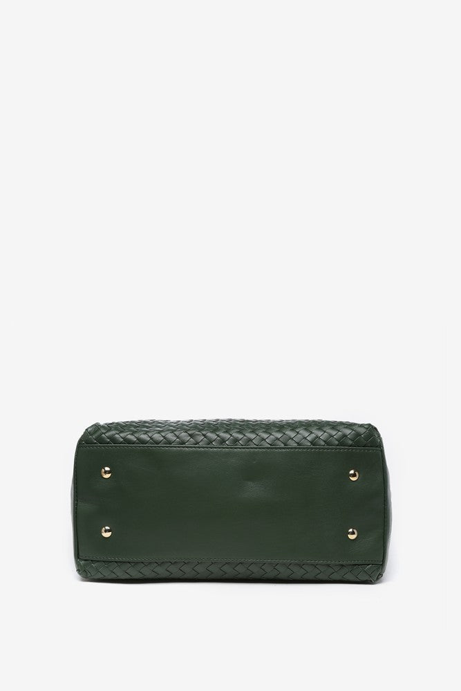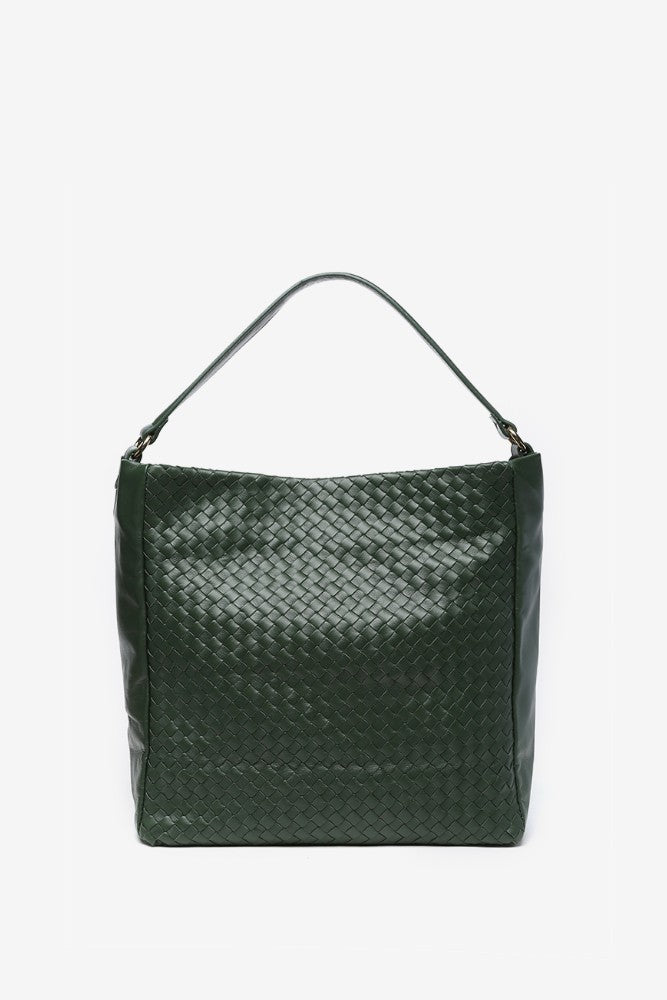 Bolso hobo de piel trenzada en verde