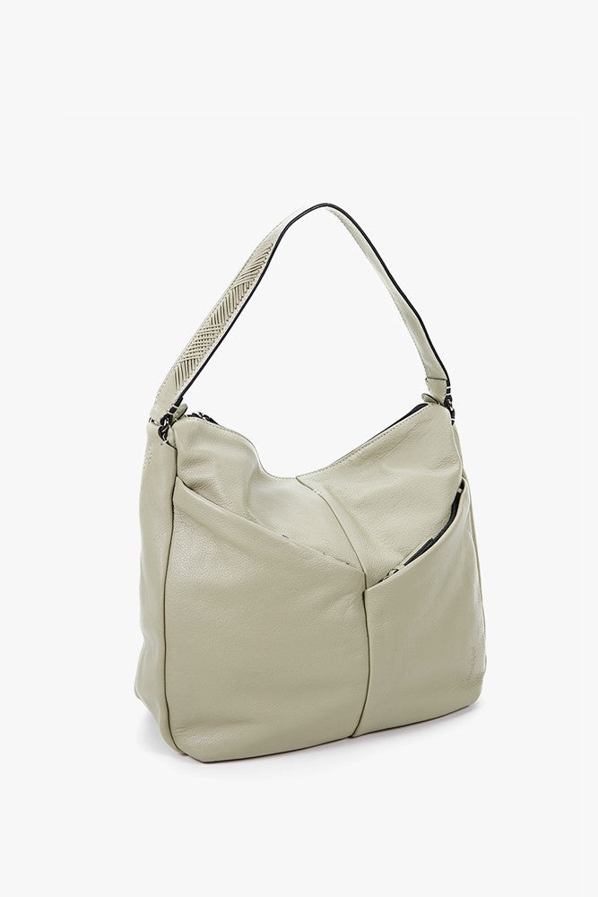 Bolso de hombro estilo hobo grande elaborado en piel Premium. Un diseño clásico, amplio y con una gran capacidad interior que se convertirá en un básico para los días de primavera y verano.