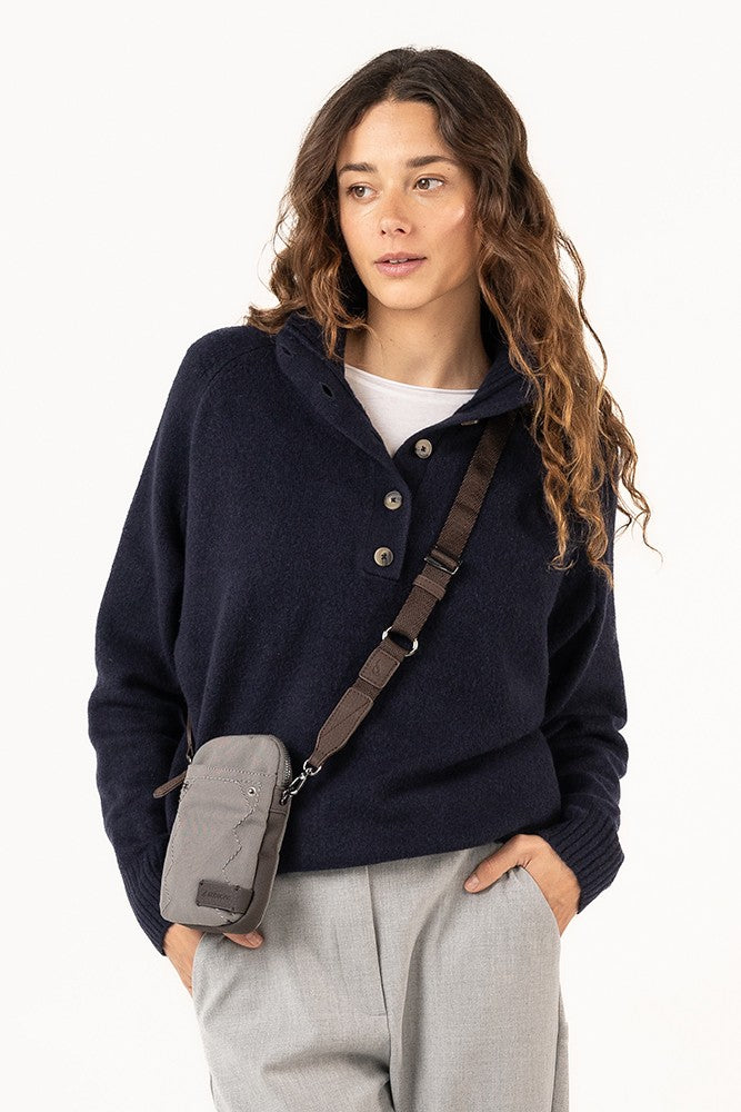 Bolso para el móvil elaborado en materiales reciclados y sostenibles. Un diseño muy funcional que combina diferentes tonalidades de color otoñales, ideal para un uso diario. Sus principales características son: