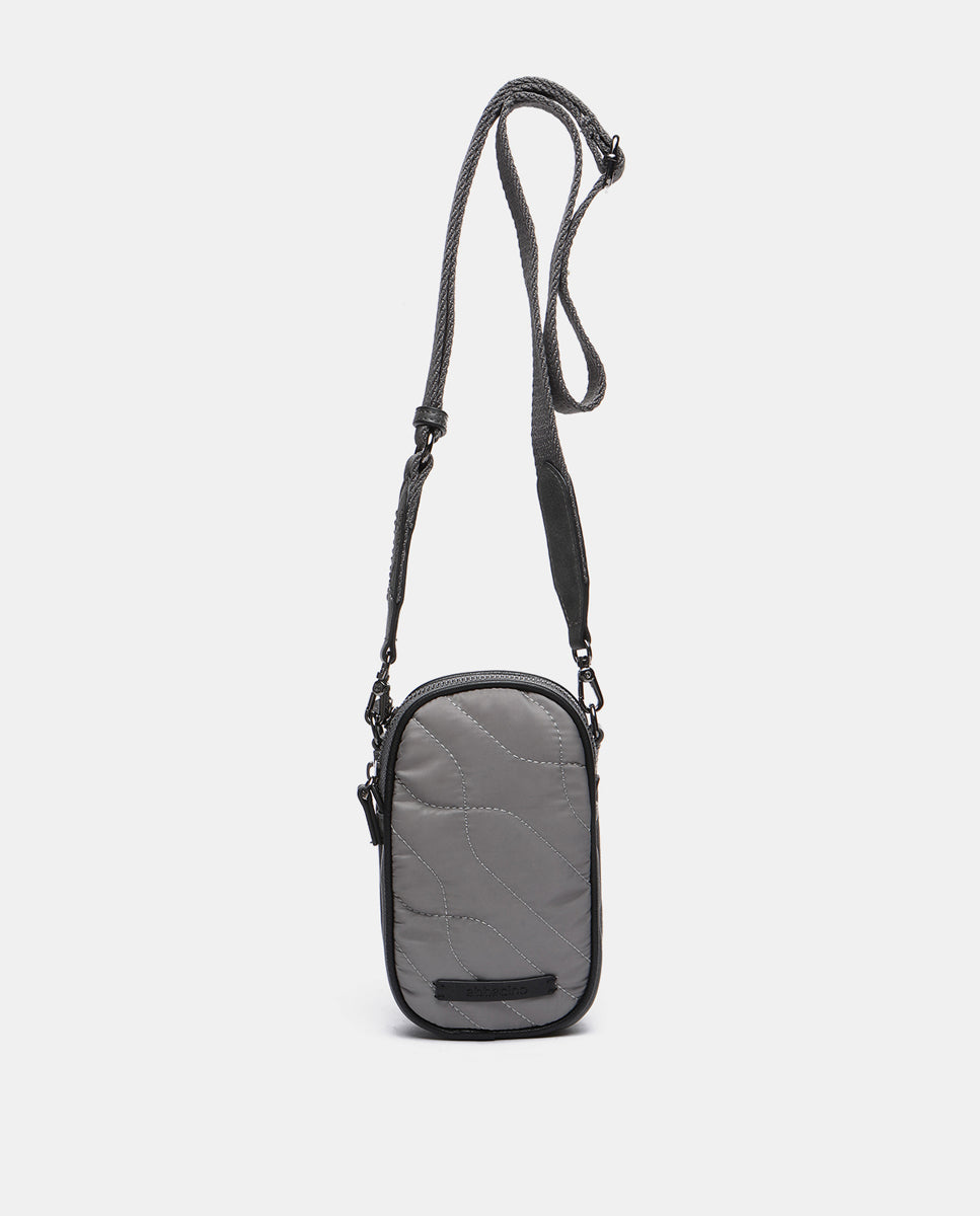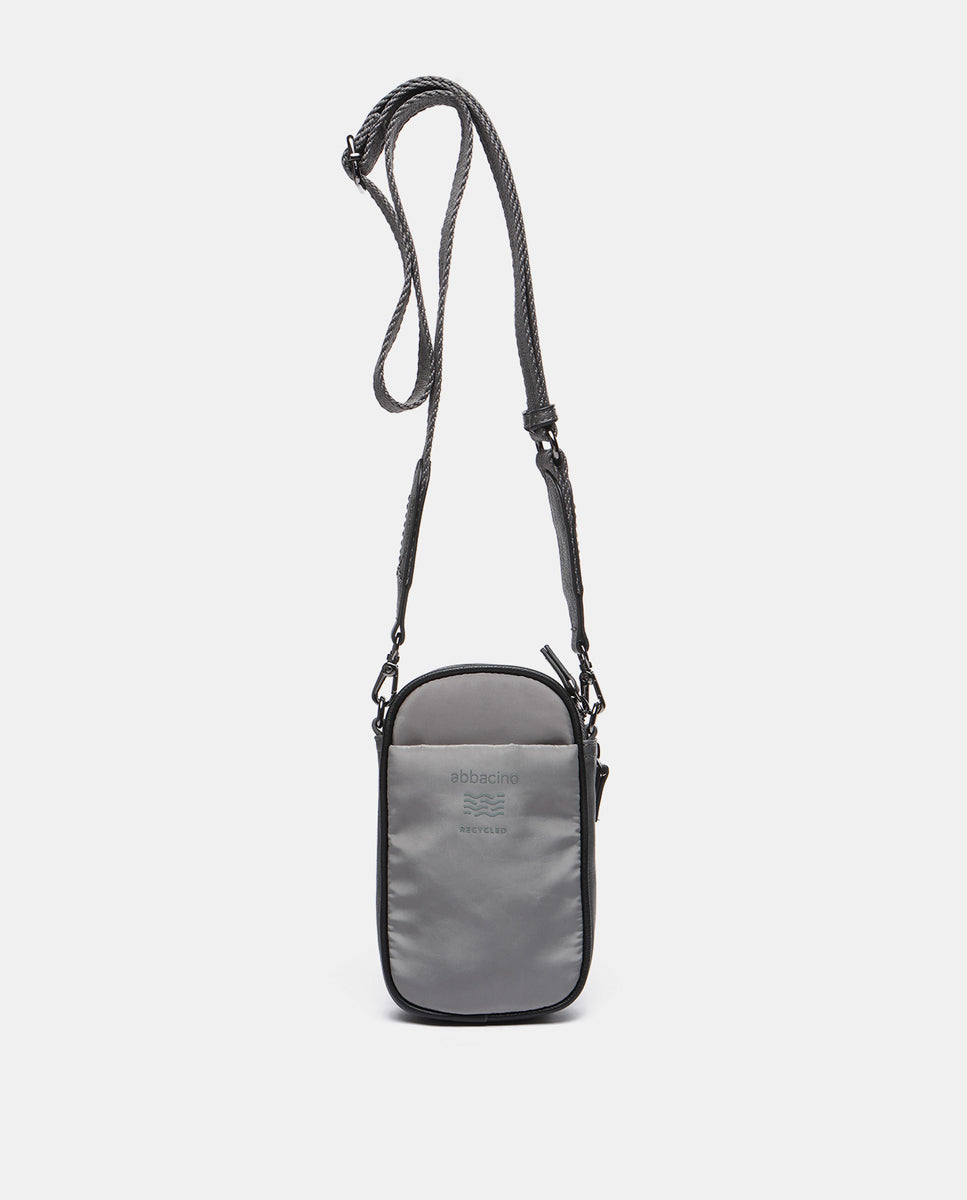 Bolso para el móvil en materiales reciclados y acolchados gris
