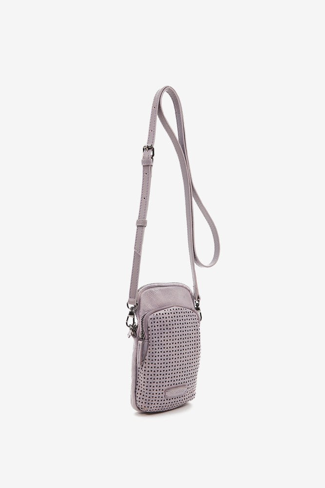 Bolso para el móvil de mujer elaborado en piel troquelada. Un diseño muy original con un bonito efecto lavado, perfecto para los días de primavera y verano. Este formato es super práctico para llevar tus imprescindibles siempre contigo sin ocupar apenas espacio.