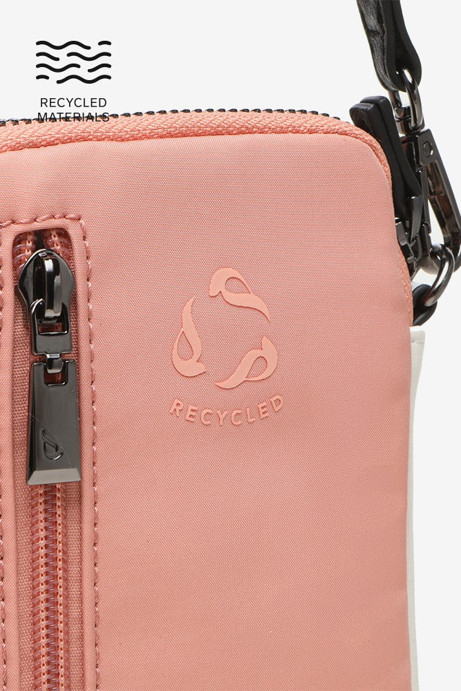 Bolso para el móvil de mujer elaborado en tejido reciclado. Un formato super práctico para llevar tus imprescindibles siempre contigo sin ocupar apenas espacio. Un modelo que combina funcionalidad con sostenibilidad y viene teñido en colores frescos y de temporada.