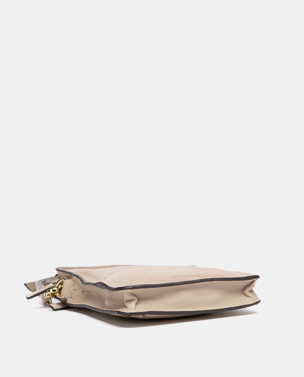 Bolso para móvil en piel y serraje beige