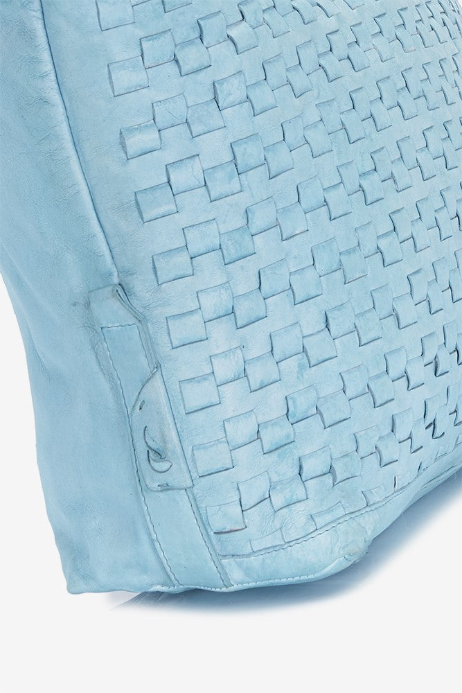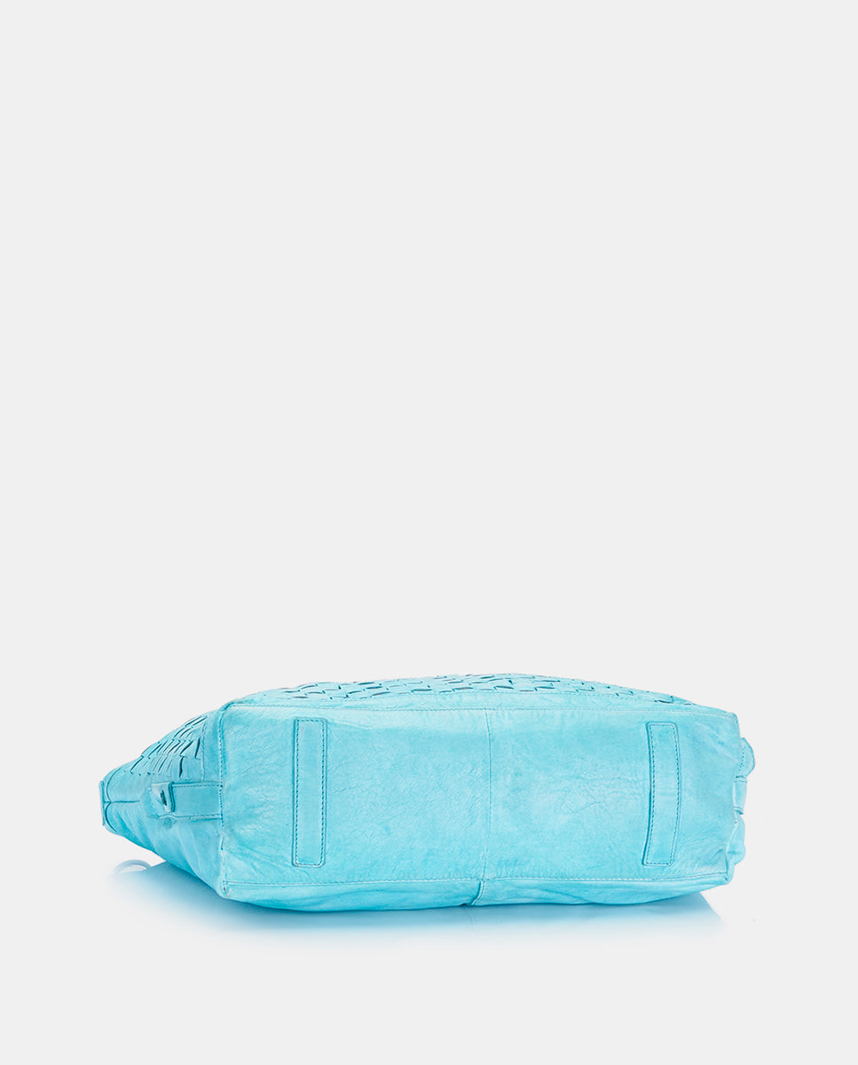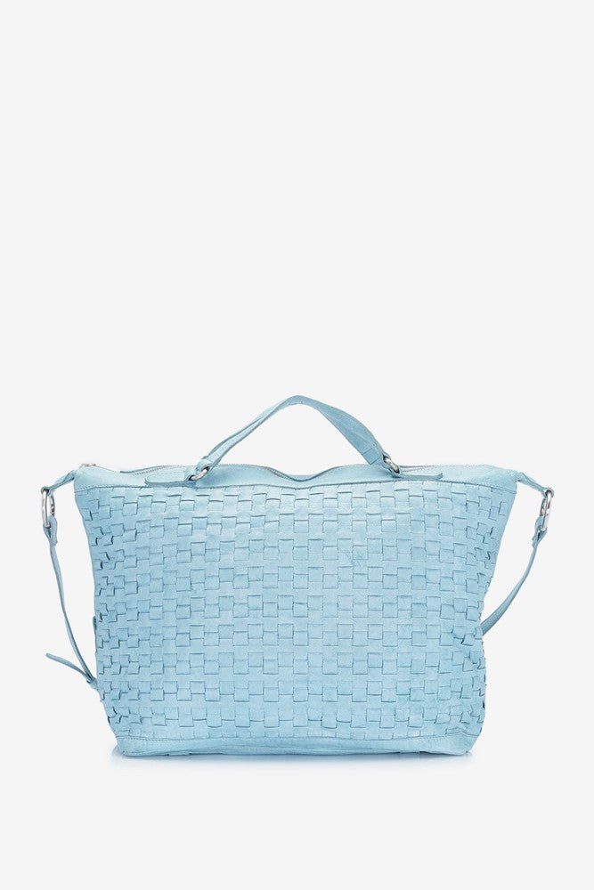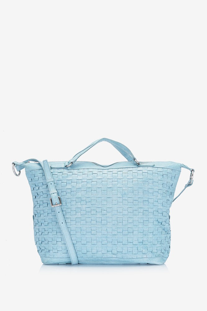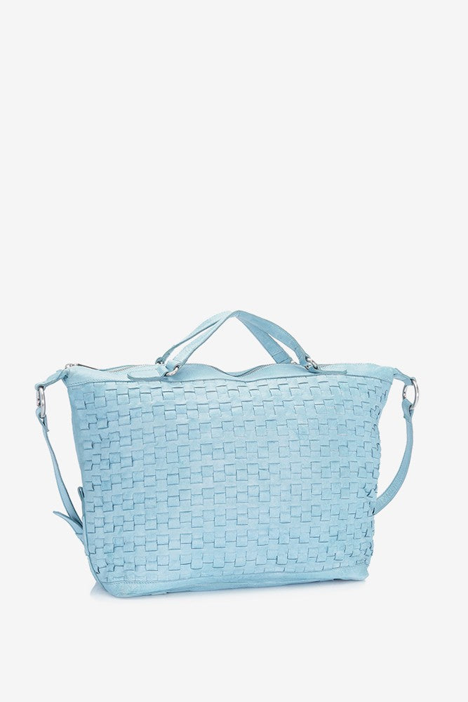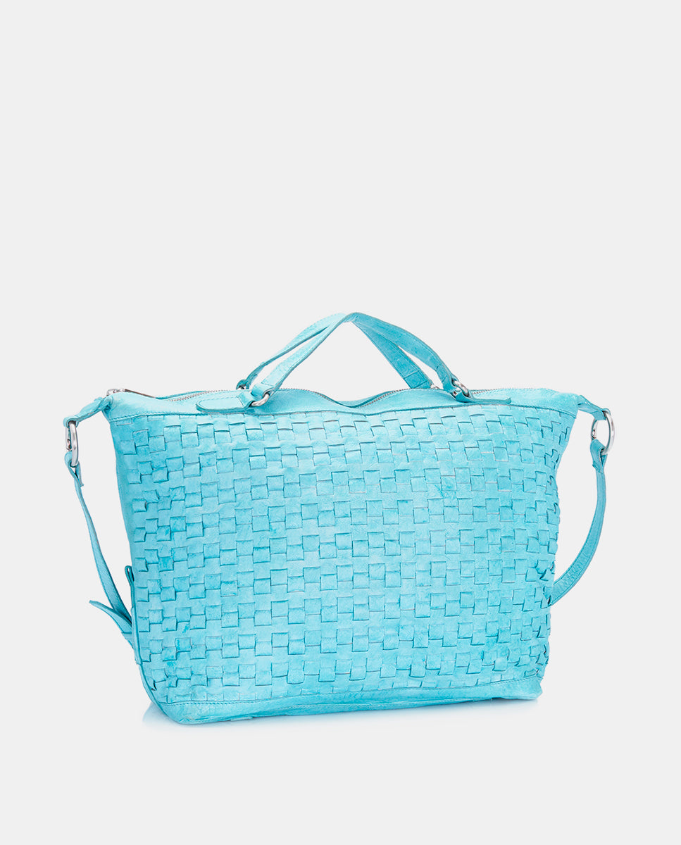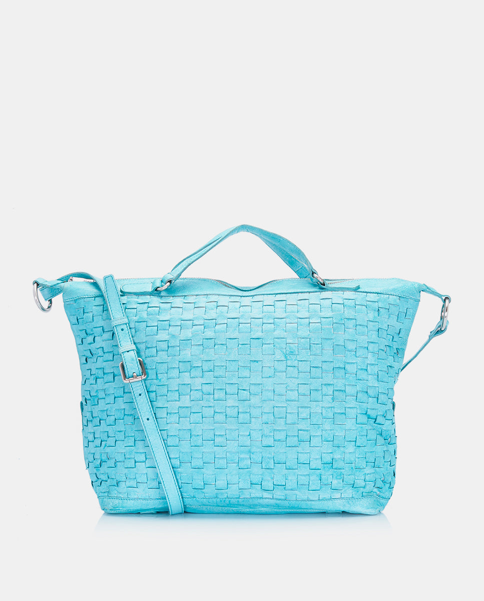 Trenzado artesanalmente y teñido en tonos estivales. Un bolso shopper para el día a día, con un aire muy fresco y mediterráneo.
