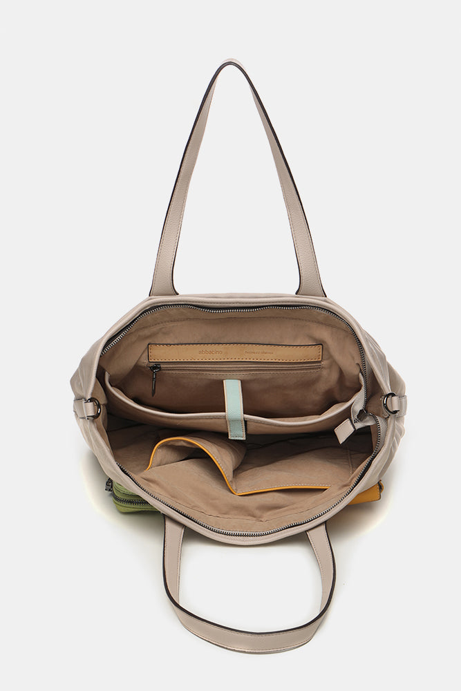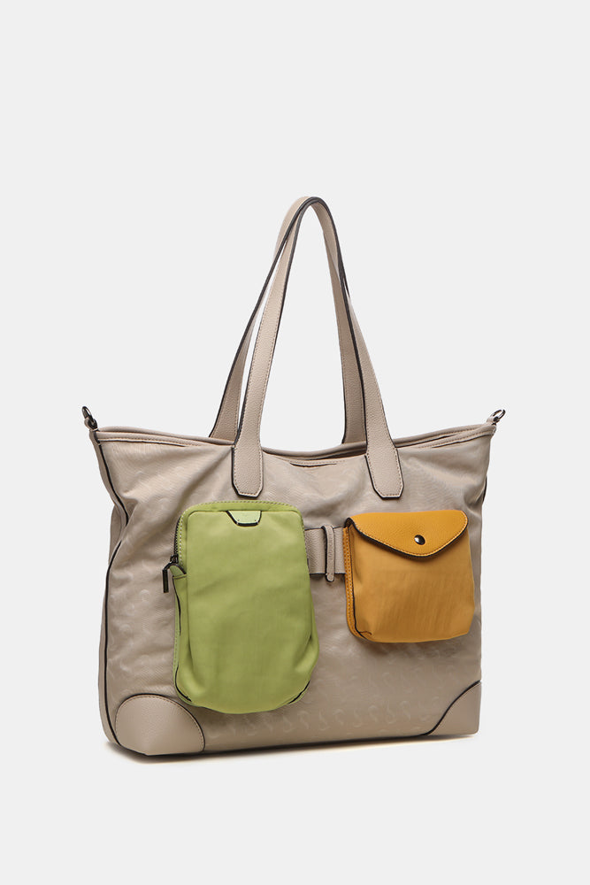 Bolso shopper elaborado en nylon, estampado con nuestro print propio Abbacino. Un diseño muy funcional gracias a los diversos compartimentos interiores y exteriores de los que dispone, que te permitirán organizar y tener siempre a mano tus objetos esenciales para el día a día.