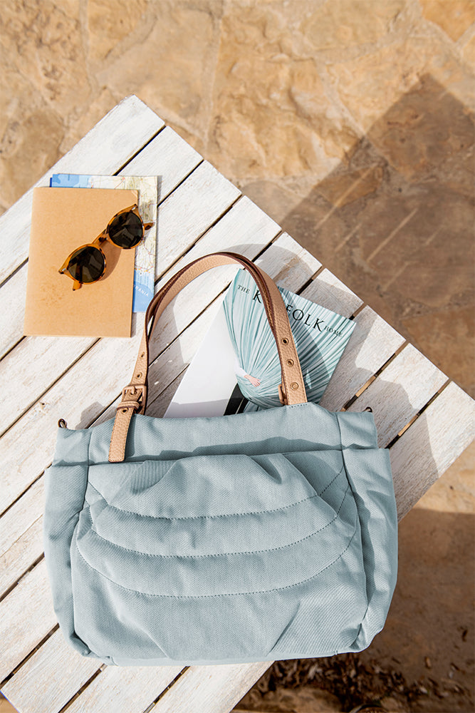 Bolso shopper en materiales reciclados y acolchados azul