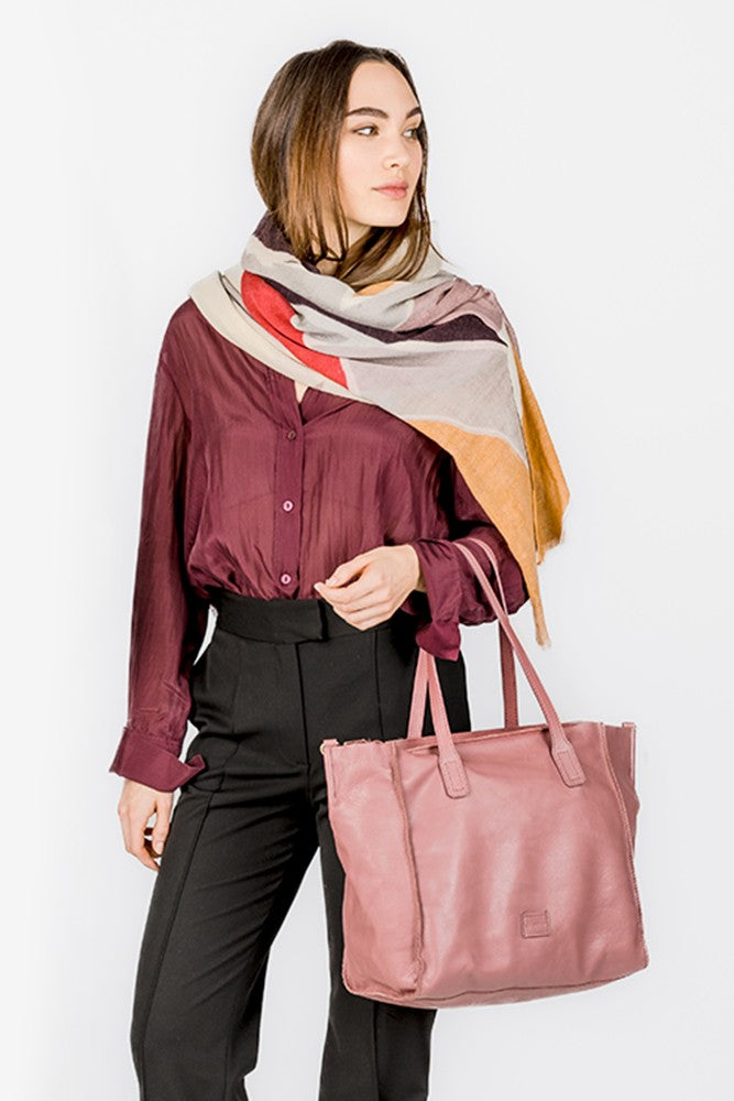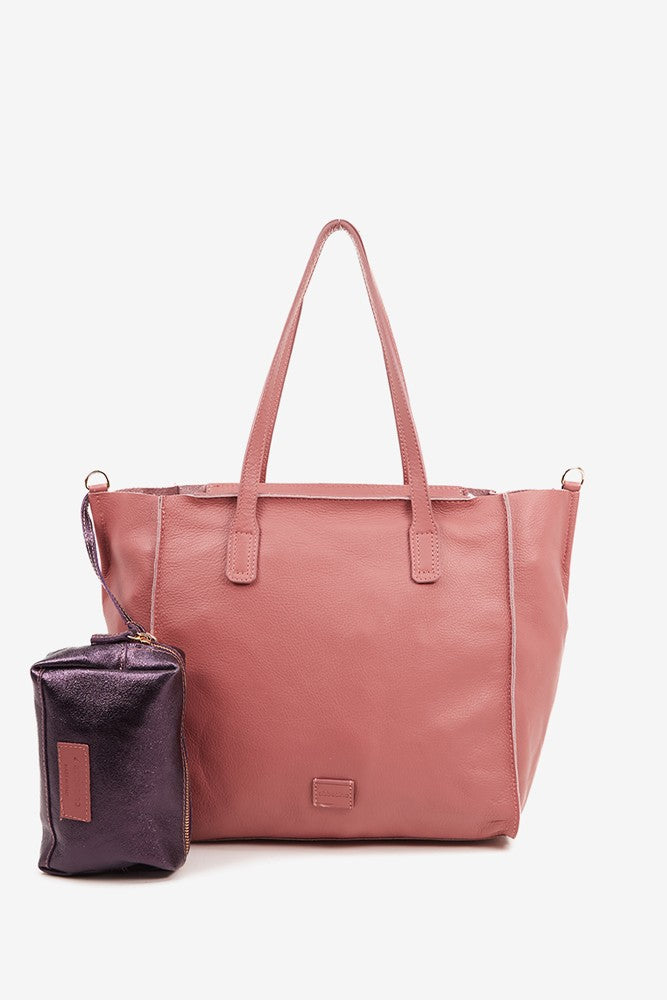 Bolso shopper grande en piel rosa