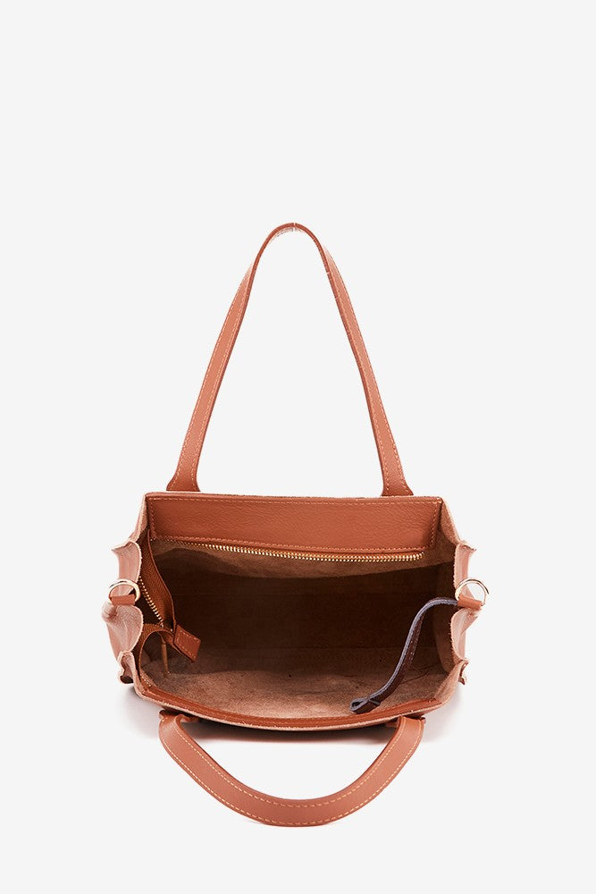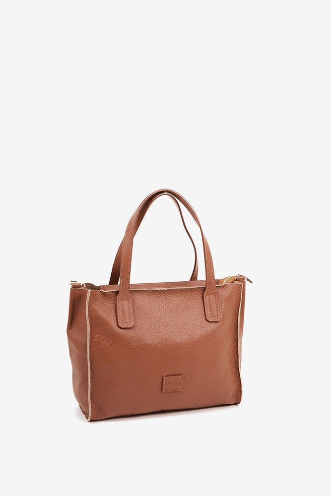 Bolso shopper pequeño de mujer elaborado en piel Premium. Un diseño minimalista, de líneas sencillas y muy práctico gracias a su capacidad interior. Se trata de un modelo muy fluido teñido en colores de temporada, ideal para un uso diario gracias a su estilo desenfadado.