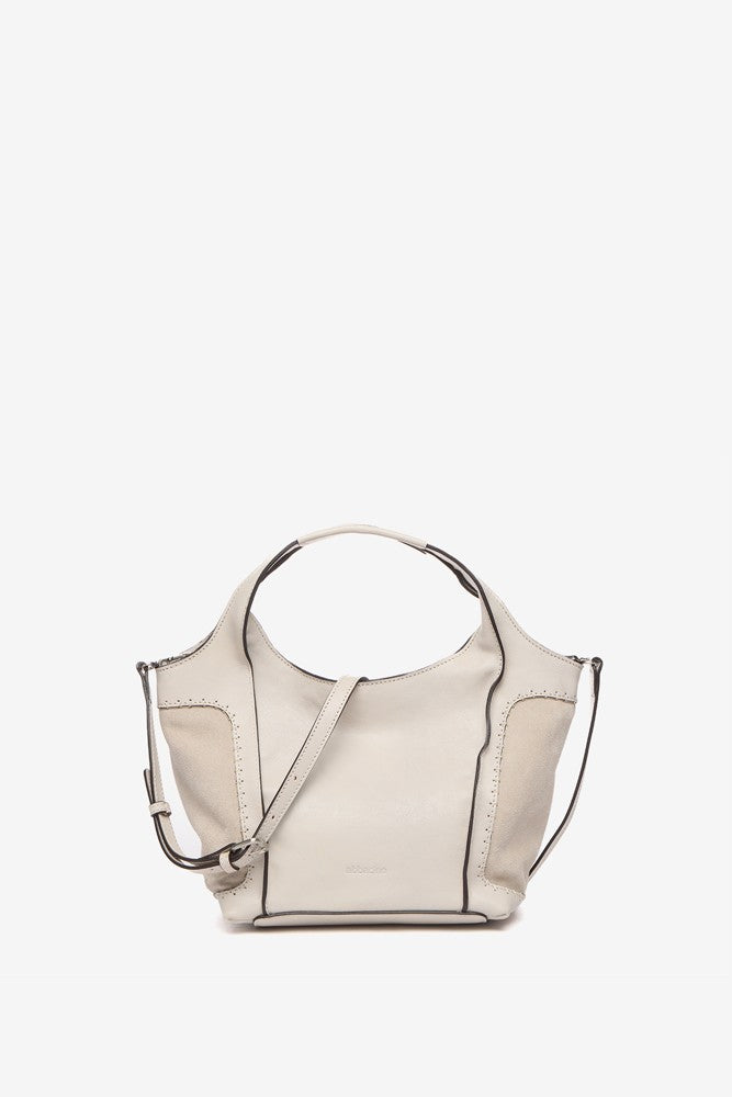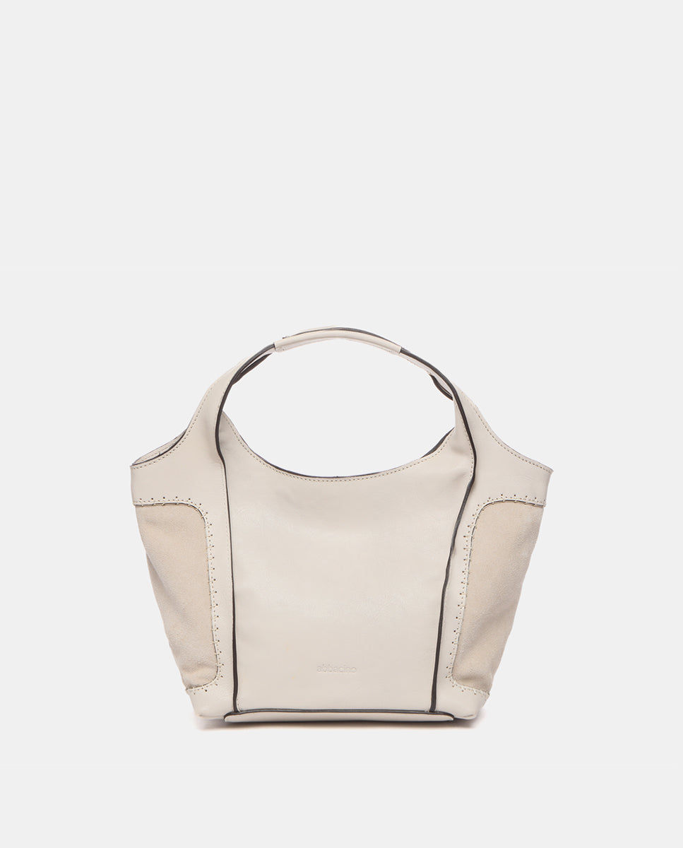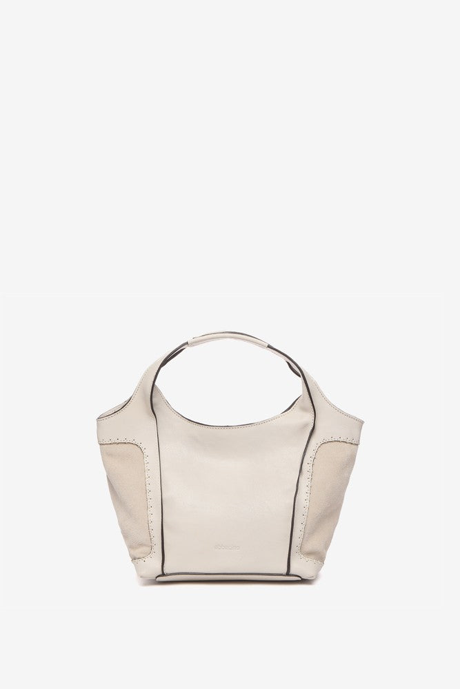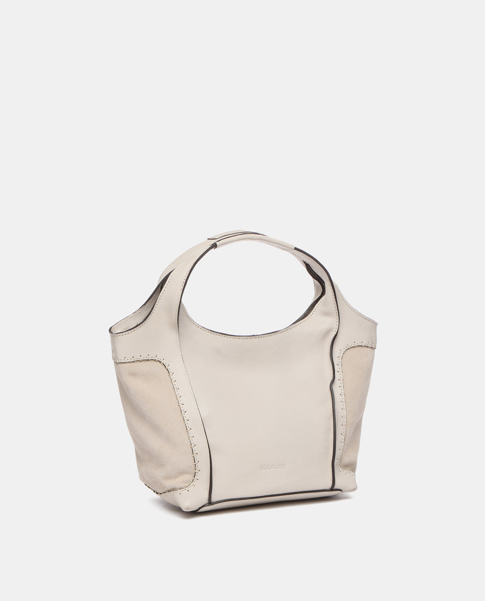 Bolso shopper pequeño de mujer elaborado en piel Premium. Un diseño novedoso en nuestro catálogo que destaca por la combinación de piel y ante. Su piel, ultra fluida y suave se tiñe en colores fácilmente combinables, de estilo atemporal. Sus principales características son: