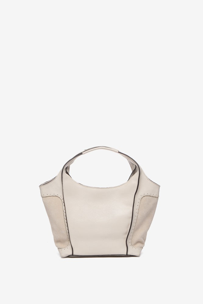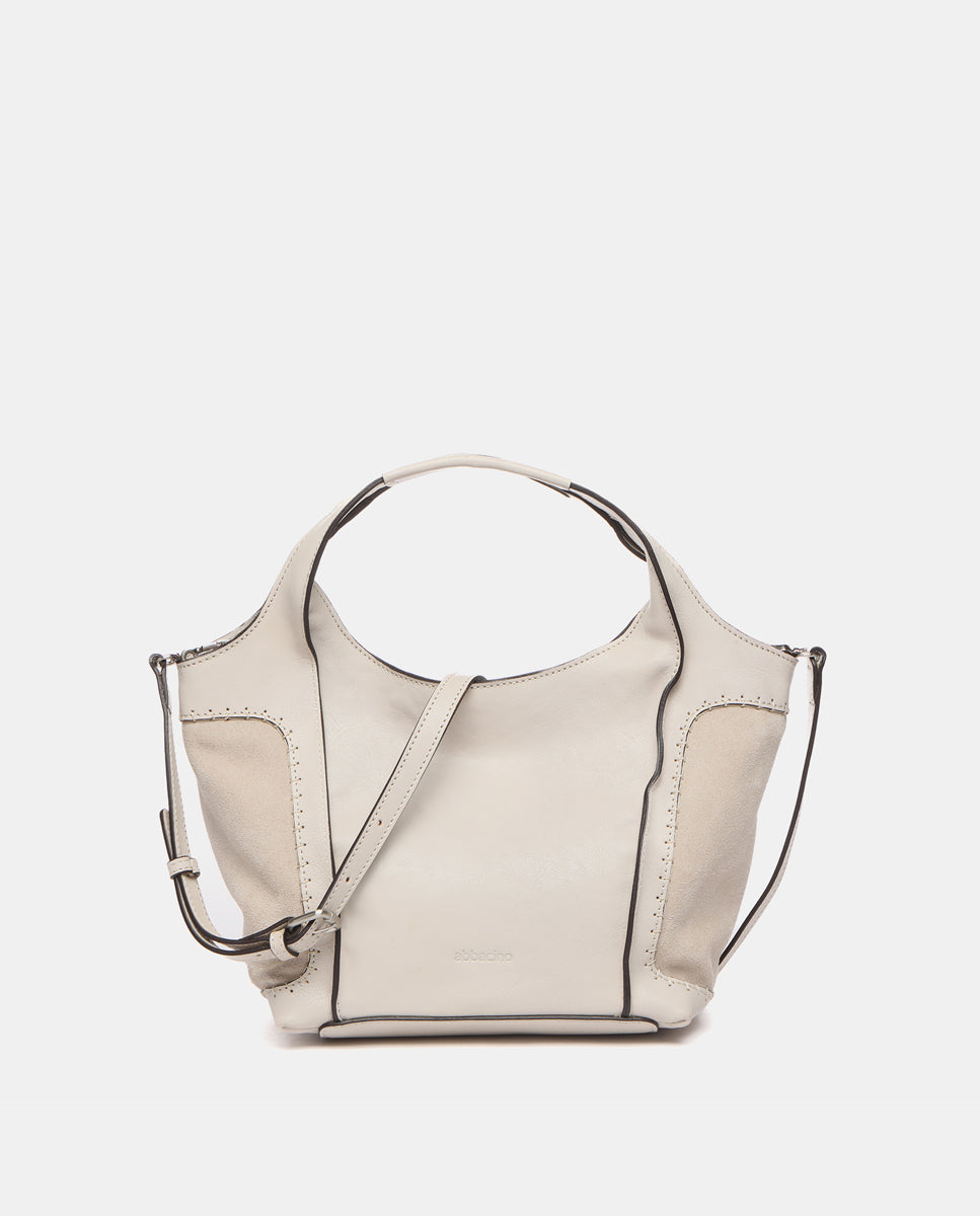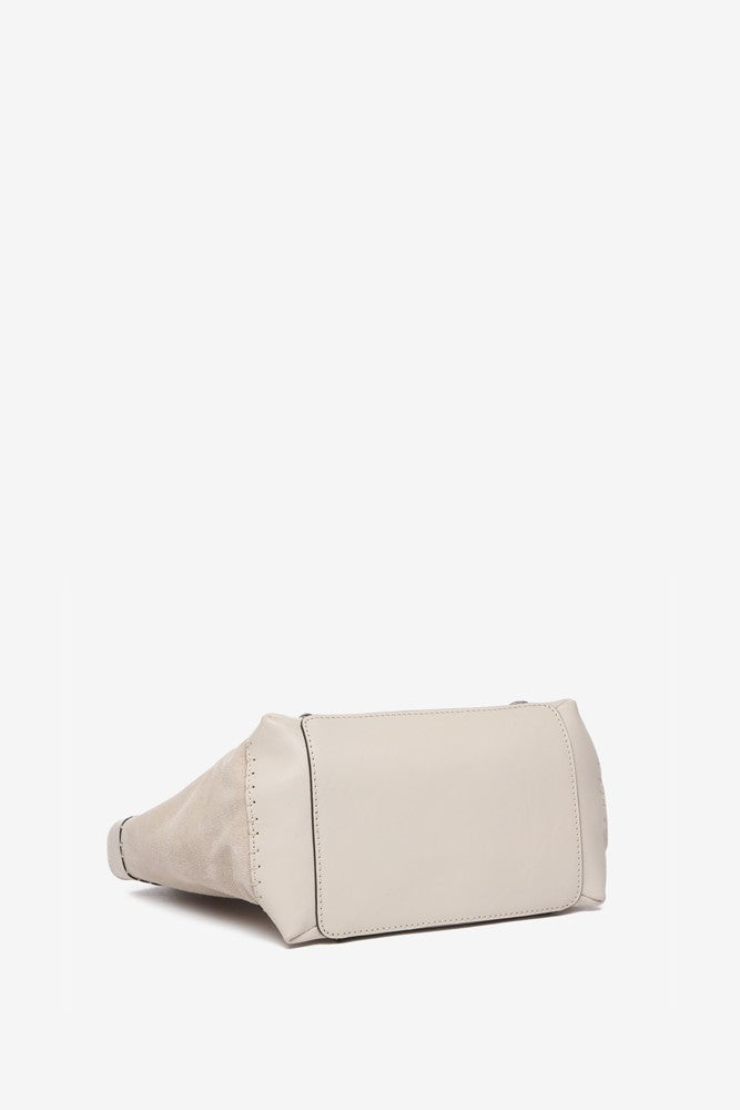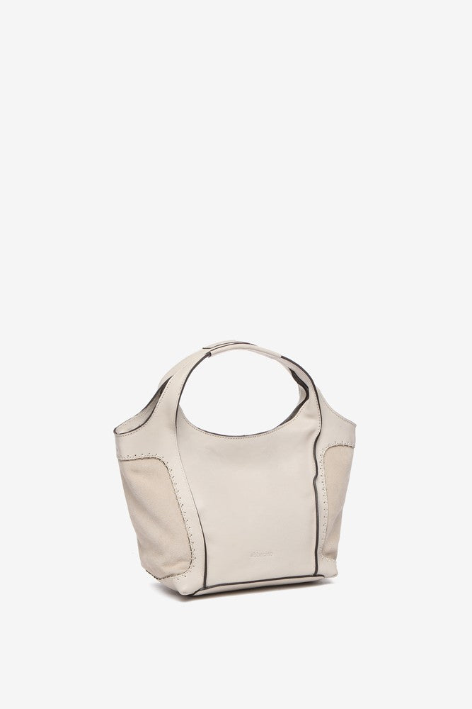Bolso shopper pequeño de mujer elaborado en piel Premium. Un diseño novedoso en nuestro catálogo que destaca por la combinación de piel y ante. Su piel, ultra fluida y suave se tiñe en colores fácilmente combinables, de estilo atemporal. Sus principales características son: