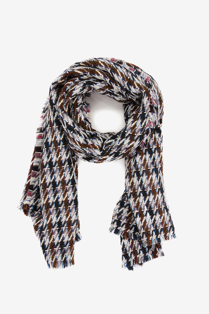 Bufanda de mujer estampada con un bonito print de pata de gallo, un clásico que se mantiene en lo más alto temporada tras temporada. Elaborada con un tejido muy suave, calentito y agradable al tacto, es el complemento perfecto para acompañarte en los meses más fríos. Sus bordes deshilados, le dan un aire actual y juvenil. Sus colores, en total tendencia, son muy fáciles de combinar.