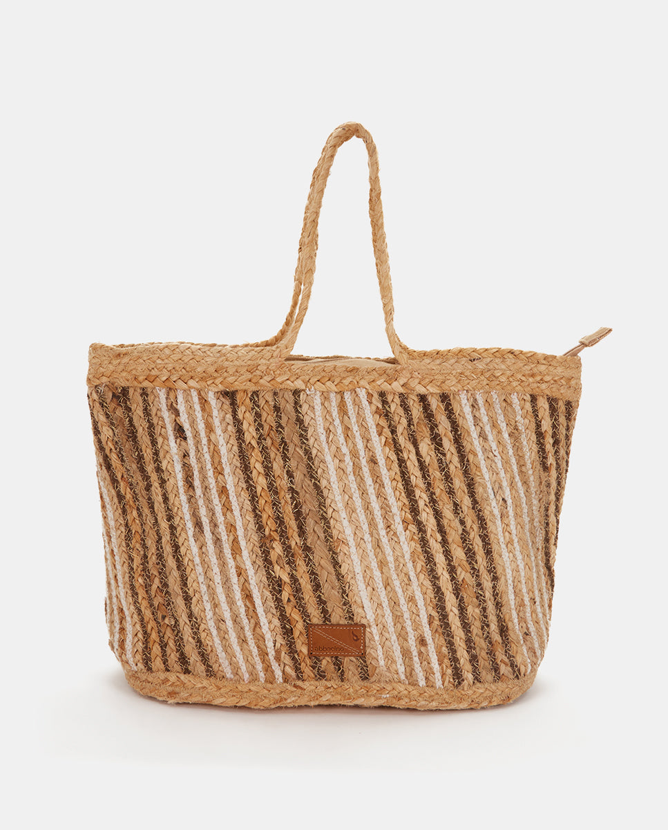 Capazo de mujer elaborado con rafia. Este bolso con estampado a rayas es ideal para tus días de playa, salidas casuales o para agregar un toque natural a tus looks diarios. Sus principales características son: