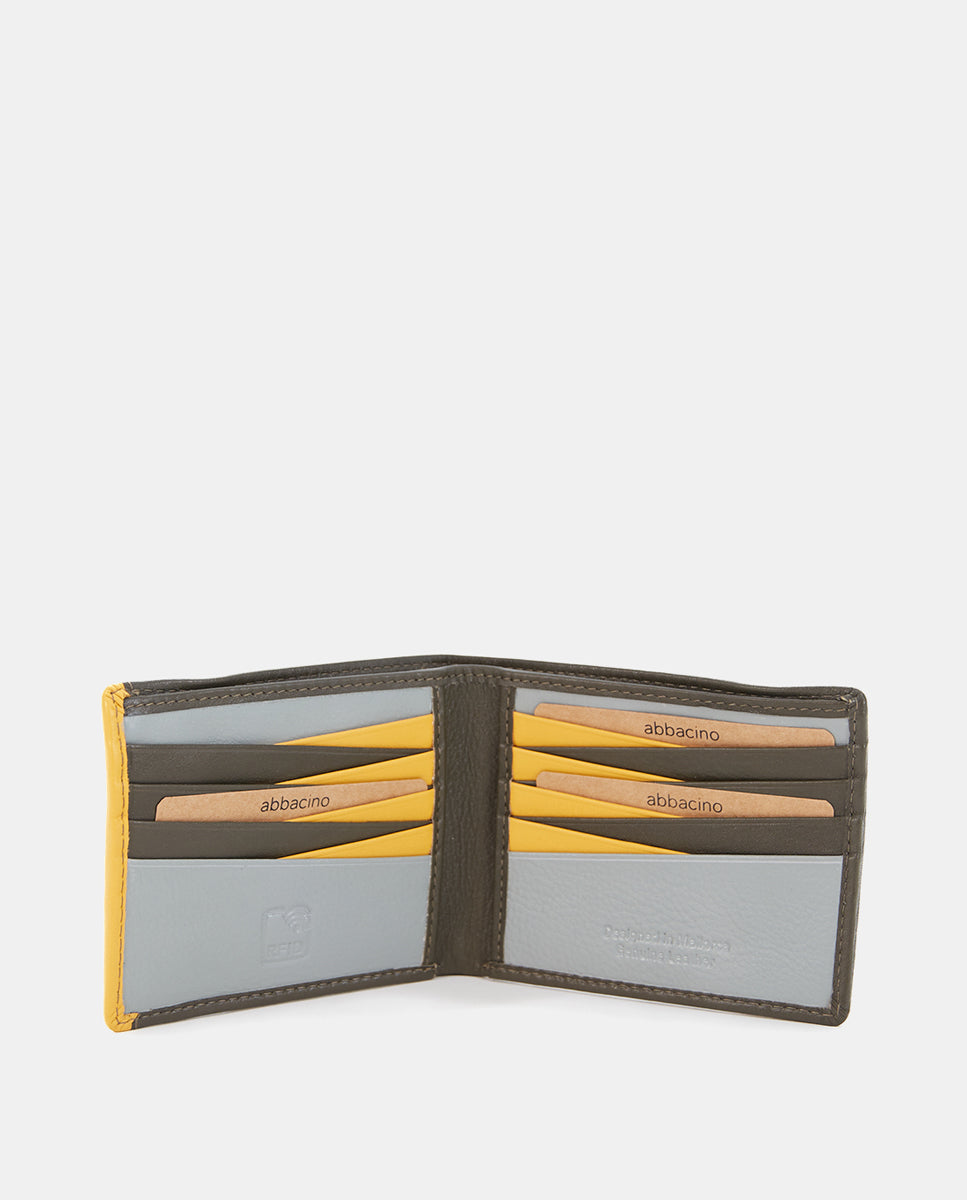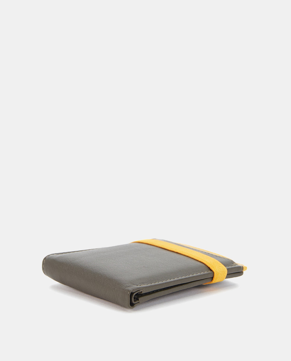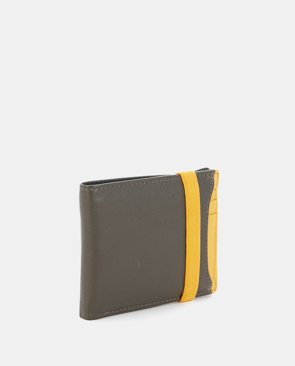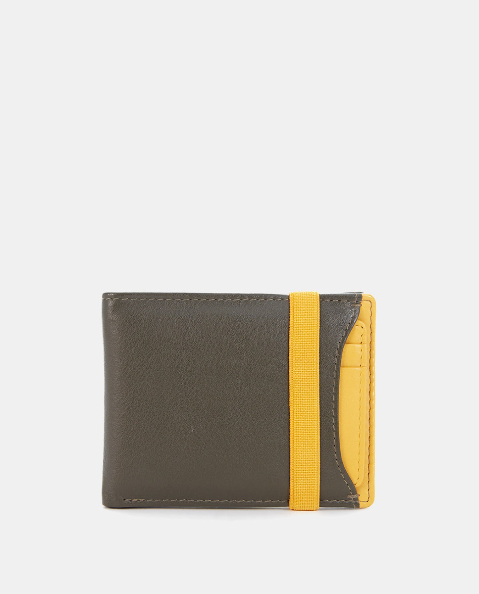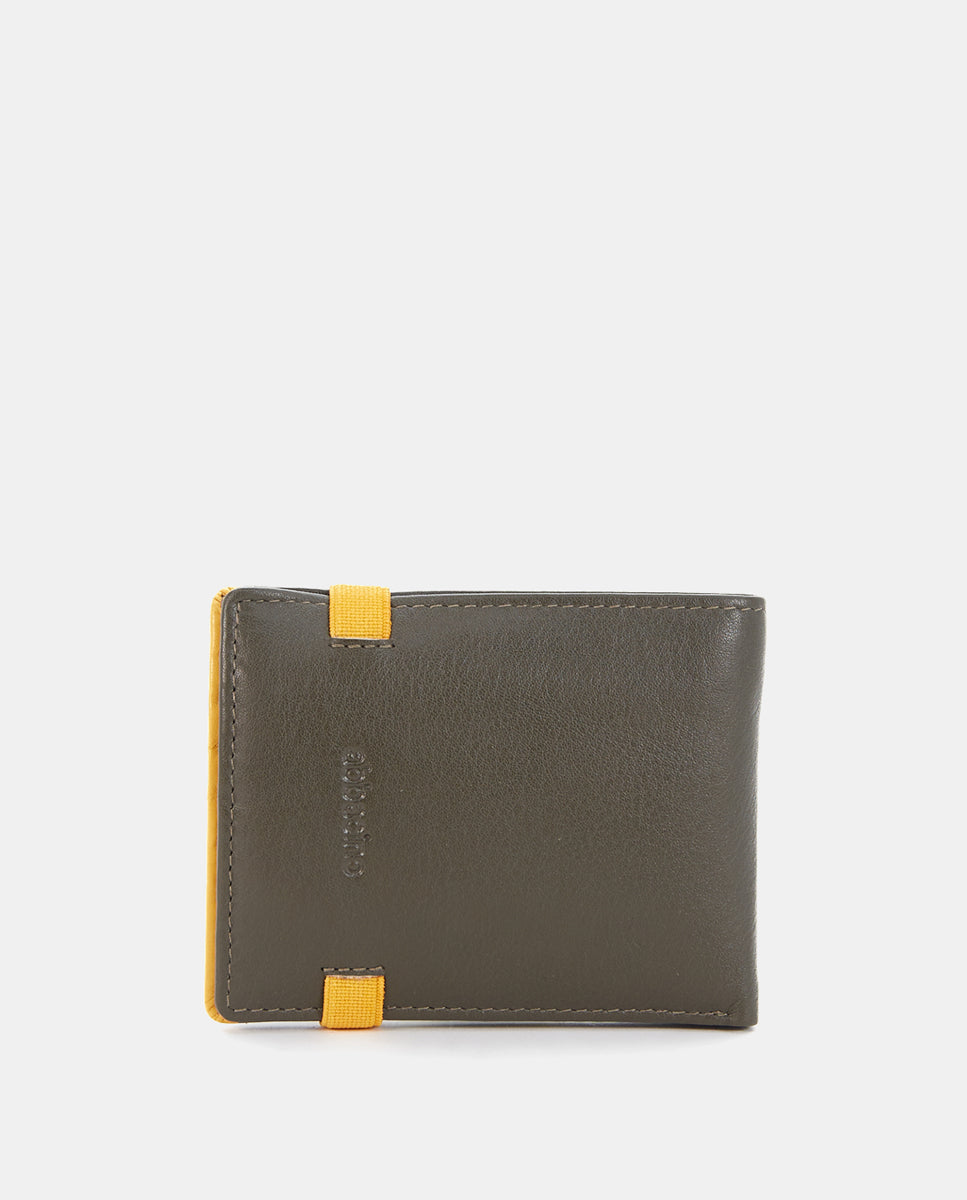 Cartera pequeña de hombre en piel vacuna. Un modelo muy práctico con cierre elástico que combina dos tonos de color. Cuenta con diversos compartimentos organizadores para tarjetas y billetes. En su exterior incluye un tarjetero extraíble. Sistema de protección RFID.