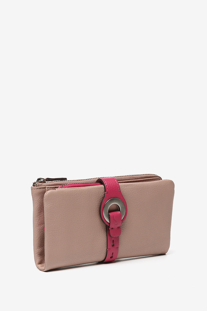 Cartera grande de mujer elaborada en piel con detalles metálicos. Original y vistoso, este modelo combina diferentes tonos de color, todos ellos en tendencia esta nueva temporada. Sus principales características son: